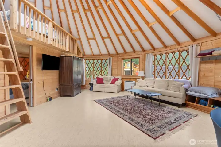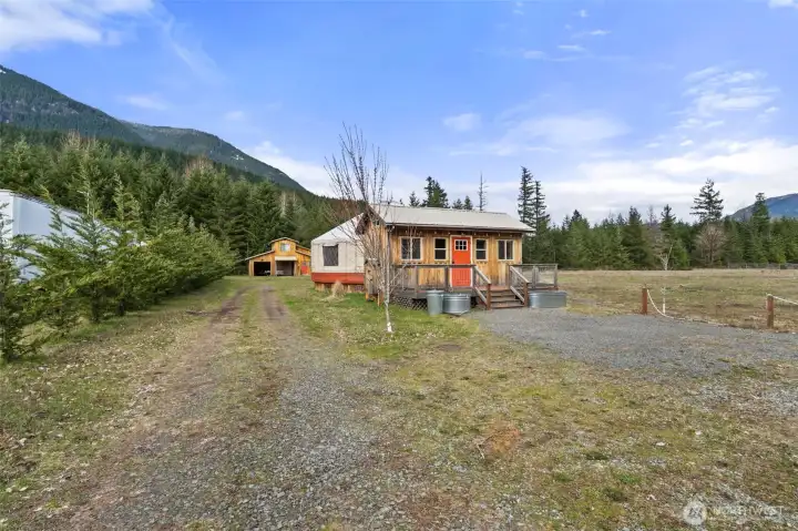 Discover the rare versatility of this scenic 6-ACRE property, set in a quiet, desirable area with incredible territorial views and a peaceful seasonal creek. Thoughtfully improved, the property is ready to enjoy now while offering exceptional future potential. Infrastructure includes 200-amp power, a septic system with two tanks (approved for 6 bedrooms), and approximately 3 acres fenced. A road maintenance agreement is in place for the private road and small bridge, providing ease of access year-round. Existing structures support both comfortable living and income potential. A top-of-the-line Rainier Yurts model yurt is paired with a well-appointed bathhouse featuring two full bathrooms, plus a spacious deck to take in the surroundings. A storage building with additional cabin living space, bathroom and an RV hookup add flexibility for guests, rentals, or extended stays. The cabin apartment has rented consistently for several years. For those looking to build, the upside is significant. The property offers SUBDIVISION POTENTIAL for up to 3 additional homes and 2 ADUs, with plans for a 3-parcel short plat available upon request—ideal for creating a private compound or developing multiple homesites, including a high-end custom residence. Located just minutes from Mount Rainier National Park and White Pass Ski Area, this is a rare opportunity to enjoy as-is, generate income, or bring your dream build to life in the heart of Pacific Northwest recreation.