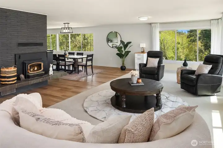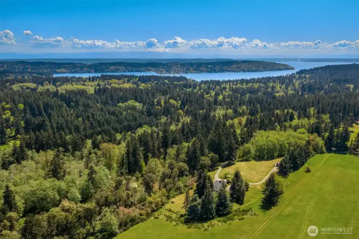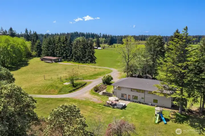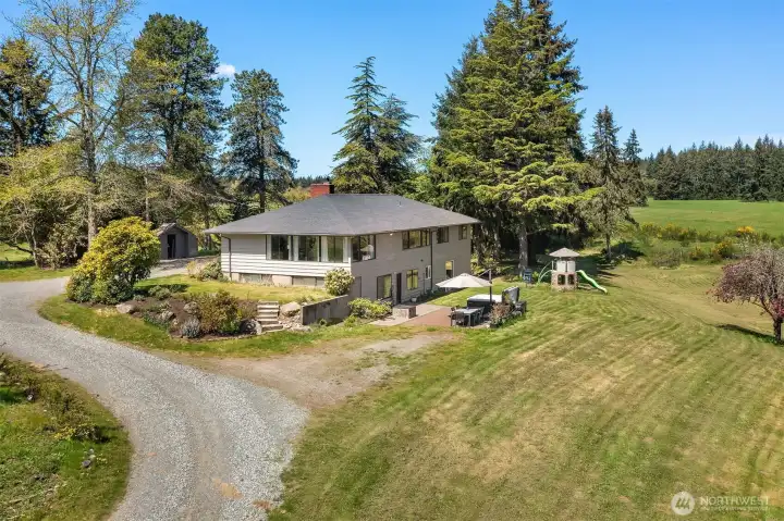 A rare chance to own 6.5 sunny, private acres on Vashon Island - formerly part of the iconic Misty Isle Farm and now surrounded by King County parkland and Vashon’s trail system. This exceptional property features two separate homes, two septic systems, a private shared well, and an RV hookup, offering unmatched flexibility for multigenerational living, rental income, homesteading, or Vashon Island farm use. The recently renovated main home is filled with natural light, offering two bedrooms, an office, and a spacious daylight basement with a second kitchen, multiple bonus rooms, and direct access to gardens, a hot tub, and outdoor play areas. The second home expands the possibilities for guest living, long-term rental, or creative studio space. A gated entry and meandering private drive lead to a sun-soaked, park-like setting with western exposure and stunning sunsets. Located in a central Vashon Island location, this property offers rare privacy while keeping you close to town, schools, beaches, and island amenities. With its acreage, abundant sunlight, privacy, and endless potential, this property delivers the space and flexibility that define the best of Vashon Island living.