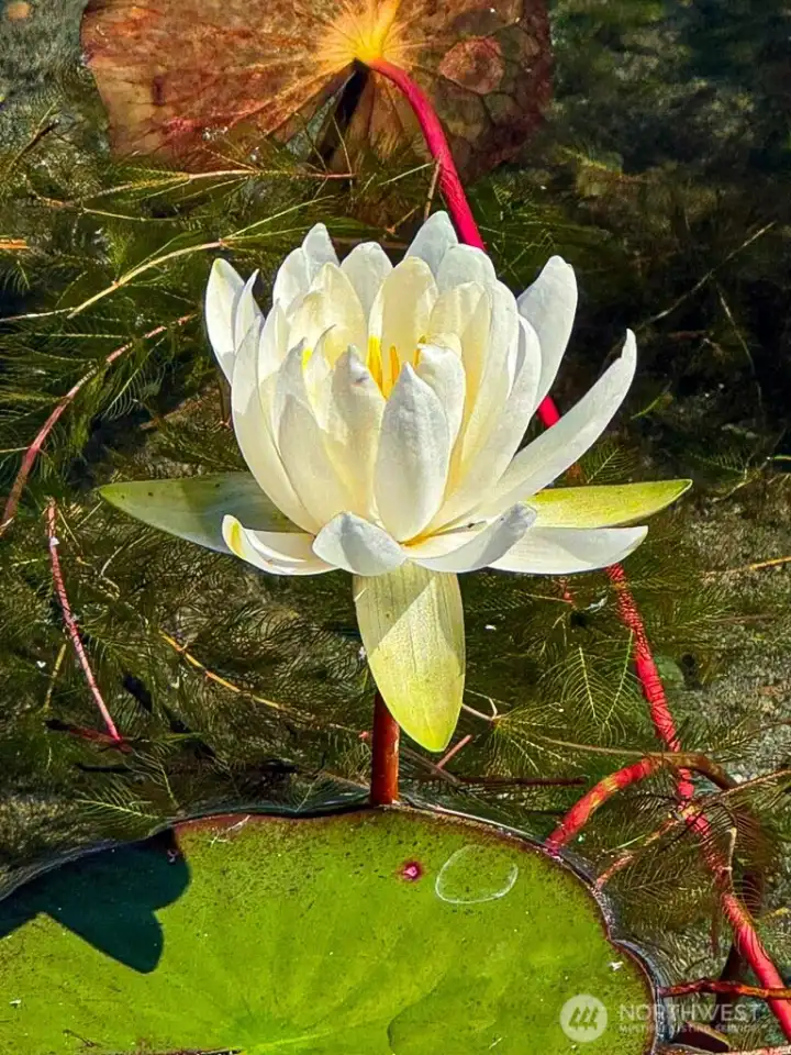 Inviting courtyard welcomes you and your guests with grape vines, a view of the lake, and your very own pond