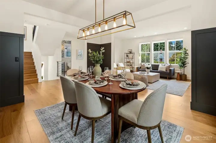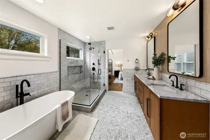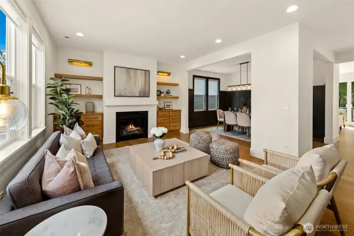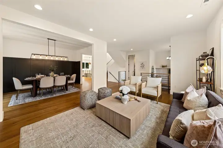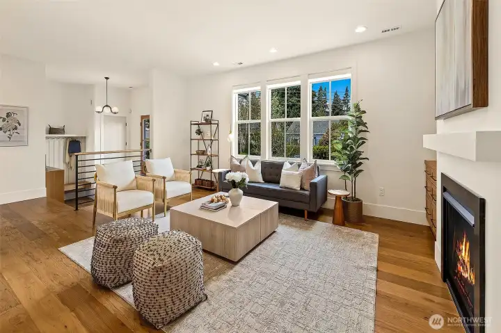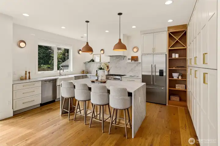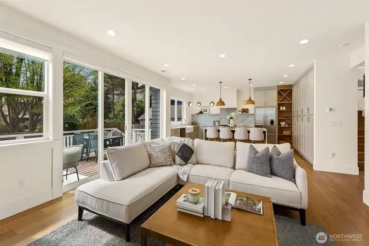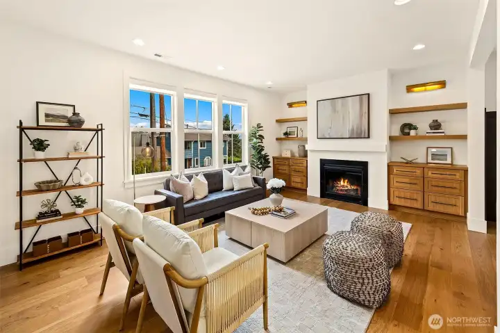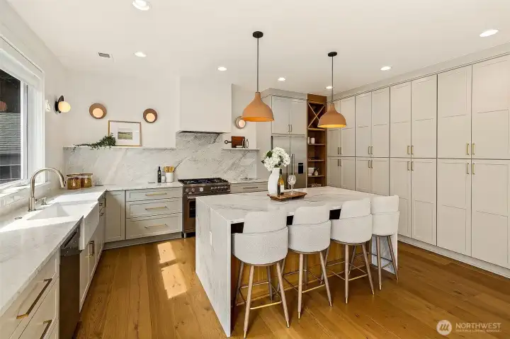 Welcome to 1551 NE 91st St where luxury meets livability in Seattle’s Maple Leaf neighborhood. This stunning home makes an unforgettable first impression with exceptional curb appeal and continues to impress with designer finishes throughout. Step inside to an open, light-filled floorplan that feels both expansive and inviting. Premium wide-plank hardwood flooring flows seamlessly through the main level, complemented by custom built-ins, a cozy gas fireplace, and central A/C for year-round comfort. The chef’s kitchen is a true showstopper, featuring commercial-grade appliances, a striking quartz waterfall island, and ample space for entertaining. Just off the kitchen, a deck leads to a fully fenced, unusually large, level backyard, perfect for gatherings, play, or quiet relaxation. This home offers an incredible amount of space with a thoughtfully designed layout. Upstairs, you’ll find four bedrooms, including a stylish primary suite that truly stands out. The spa-inspired ensuite bath boasts a soaking tub, heated floors, and custom closet built-ins. A full bath and convenient upstairs laundry/utility room complete this level. The lower level adds even more versatility with a guest suite, ¾ bath, and a spacious rec room with wet bar, ideal for entertaining. A finished storage room in the garage adds practical convenience. With its amazing floorplan, high-end finishes, and rare combination of space and style, this home is a standout opportunity in Seattle living.