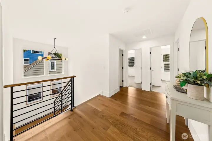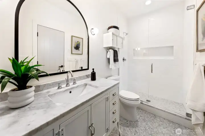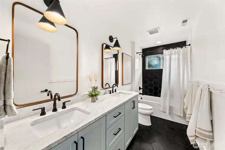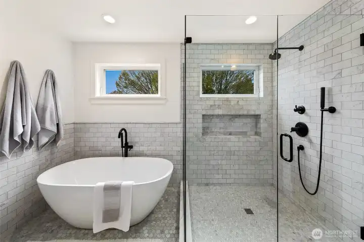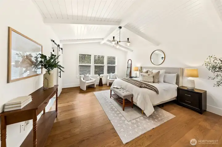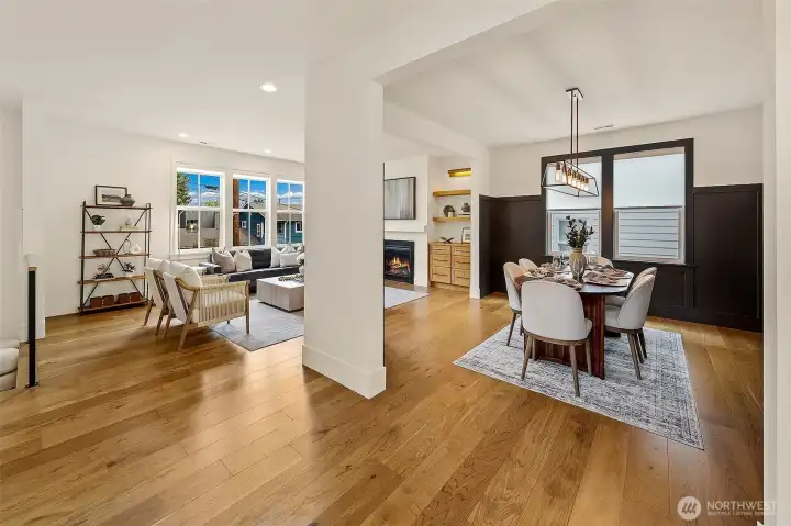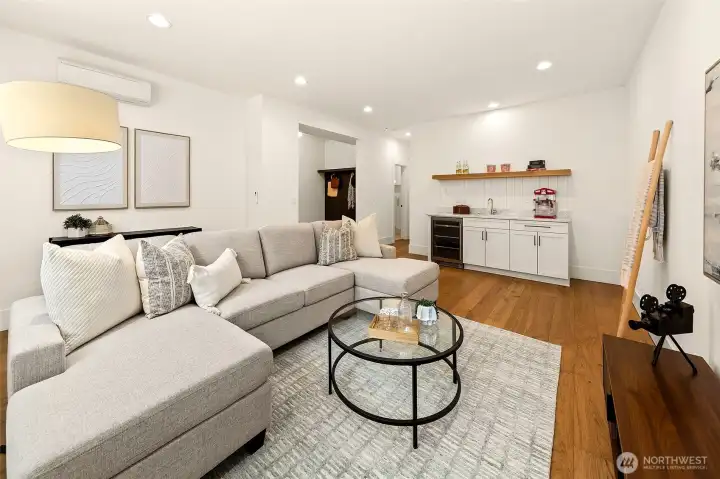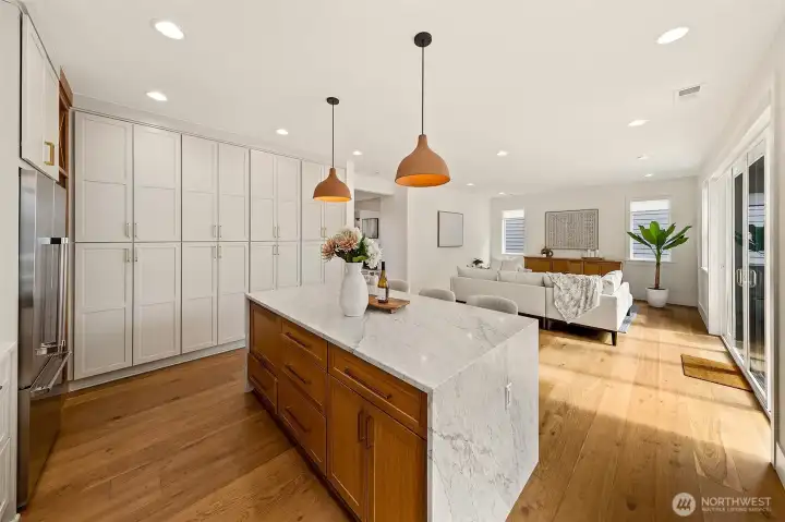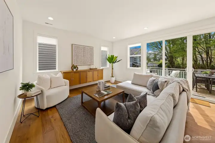 Welcome to 1551 NE 91st St where luxury meets livability in Seattle’s Maple Leaf neighborhood. This stunning home makes an unforgettable first impression with exceptional curb appeal and continues to impress with designer finishes throughout. Step inside to an open, light-filled floorplan that feels both expansive and inviting. Premium wide-plank hardwood flooring flows seamlessly through the main level, complemented by custom built-ins, a cozy gas fireplace, and central A/C for year-round comfort. The chef’s kitchen is a true showstopper, featuring commercial-grade appliances, a striking quartz waterfall island, and ample space for entertaining. Just off the kitchen, a deck leads to a fully fenced, unusually large, level backyard, perfect for gatherings, play, or quiet relaxation. This home offers an incredible amount of space with a thoughtfully designed layout. Upstairs, you’ll find four bedrooms, including a stylish primary suite that truly stands out. The spa-inspired ensuite bath boasts a soaking tub, heated floors, and custom closet built-ins. A full bath and convenient upstairs laundry/utility room complete this level. The lower level adds even more versatility with a guest suite, ¾ bath, and a spacious rec room with wet bar, ideal for entertaining. A finished storage room in the garage adds practical convenience. With its amazing floorplan, high-end finishes, and rare combination of space and style, this home is a standout opportunity in Seattle living.