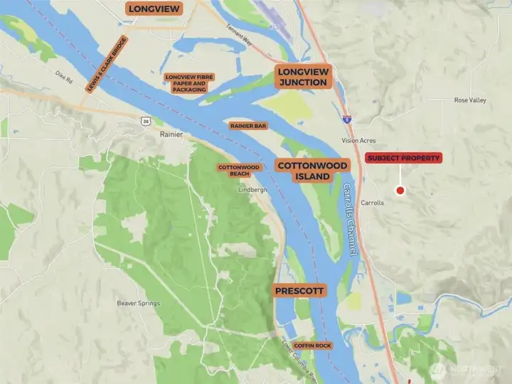 Discover a luxury collection of view parcels overlooking the Columbia River, the Lewis and Clark Bridge, and miles of scenic, tree-covered hillsides spanning both Washington and Oregon. This offering includes six (6) parcels ranging from 2–3 acres each; a 6-acre parcel; and, a 21-acre parcel with potential to be further divided into two lots. Estimates in hand for both water wells and power, along with a passing perc test. This gated enclave offers a peaceful, countryside feel while maintaining excellent accessibility & quick access to I-5 north or south — just under 15 minutes to Longview and 45 minutes to Portland. You can also see Prescott Bar, Cottonwood Island, Carrol's Channel, & Longview Fiber and Paper Packaging from the property. Owner financing is available, and parcels may be purchased individually or as a package — offering flexibility to buy the entire collection or select the site that best fits your vision.