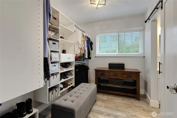 The crown jewel---this amazing walk in primary bedroom closet! There is room for everything!