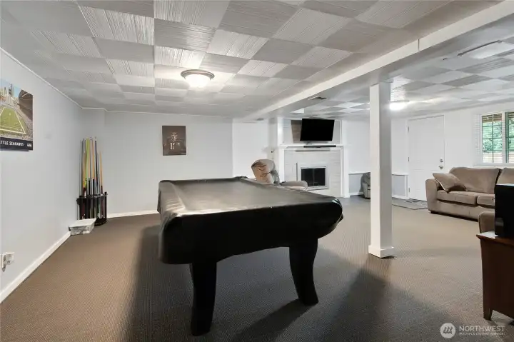 This Living room, game room, MIL set up can be whatever you want to make of it. The wood burning fireplace and mounted tv just add to this room's versatility.