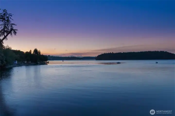 Views north, across Squaxin Passage to Hope Island and the Olympic mountains