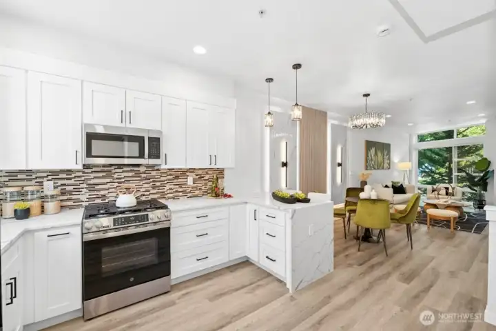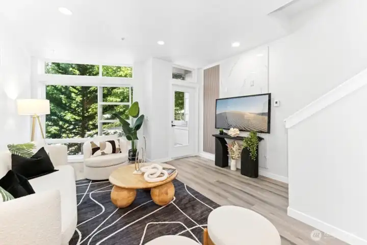 Excellent location and modern design in this beautifully remodeled home at Element. This contemporary residence features soaring ceilings, expansive windows, and sleek finishes throughout. The open-concept main level includes a stylish, fully updated kitchen with new appliances. Upstairs offers two spacious bedrooms and two bathrooms. The vaulted third-level loft with large windows is perfect for a home office, media room, or flex space. Like-new water heater, plus washer and dryer included. Close to Amazon, Meta, Microsoft, Google, Redmond Town Center, Marymoor Park, and more. Easy access to I-405 and SR-520. No rental cap and low HOA dues. Staging has been removed!