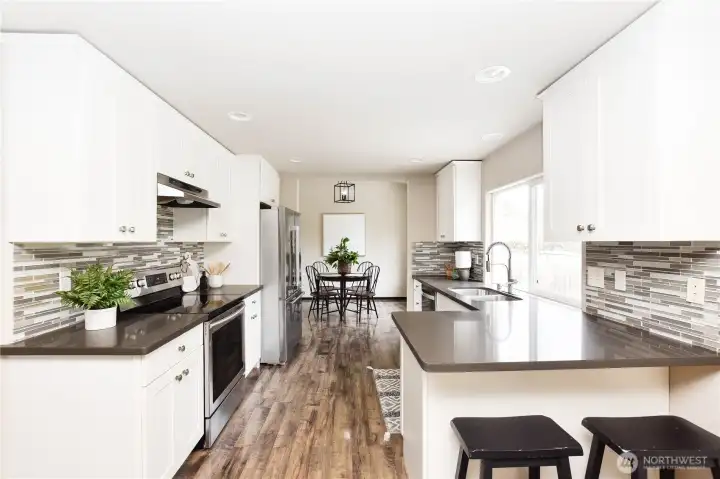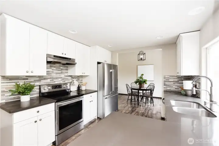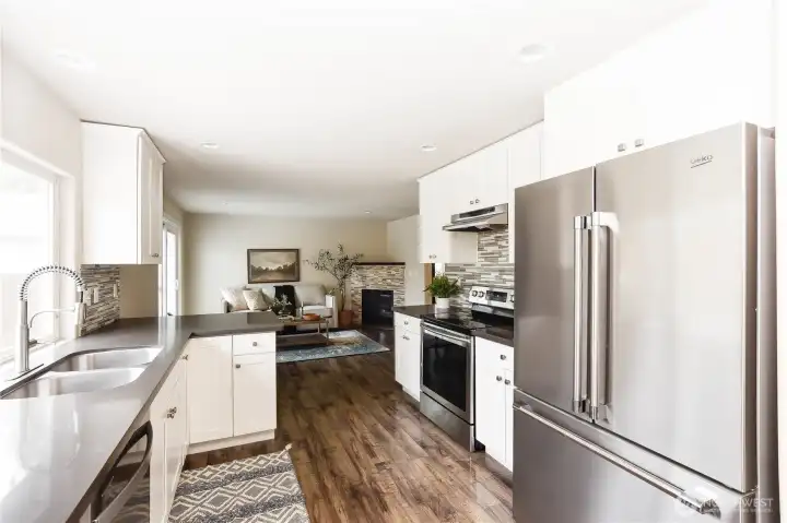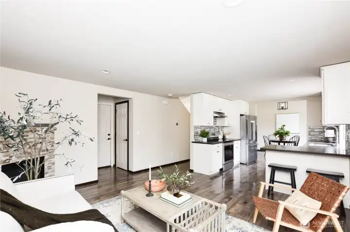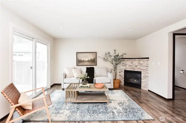 Welcome to this beautifull 2-story home in the highly desirable Reserve community, complete with private community beach. The kitchen, at the heart of the home, showcases quartz counters, stainless appliances, and a stylish tile backsplash, flowing seamlessly between the vaulted front room, adjacent to the dining room and into the living room with a gas fireplace—perfect for everyday living. Major updates include a new roof (2019), backyard patio (2023) and new furnace, A/C, dishwasher (2025). Upstairs offers 3 bedrooms, including a spacious primary suite with a walk-in closet. Bathroom off primary with dual vanities and tiled shower/bath surround. Step outside to a fully fenced yard backing to peaceful greenbelt for added privacy. Patio and firepit are wonderful for summer months. Enjoy community trails, parks, and RV/boat parking, and gated shared beach with dock - all within the Lake Stevens School District!