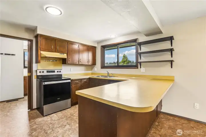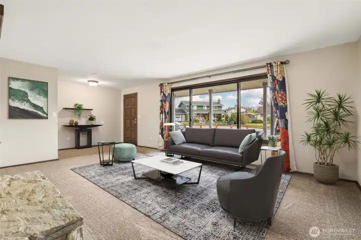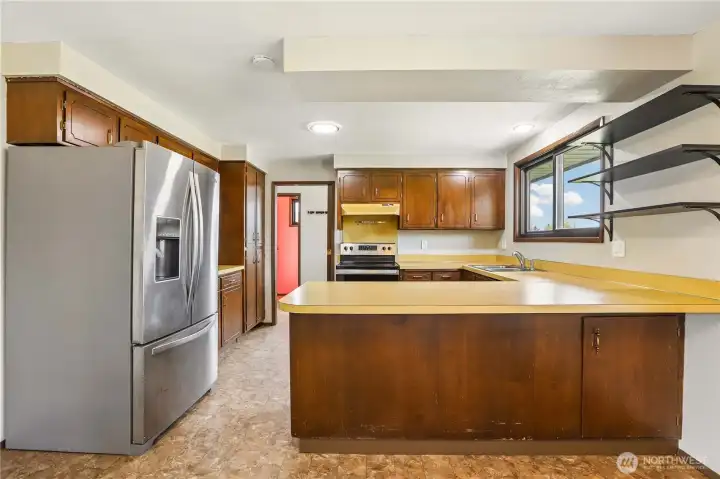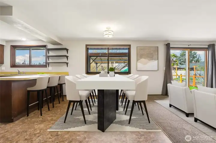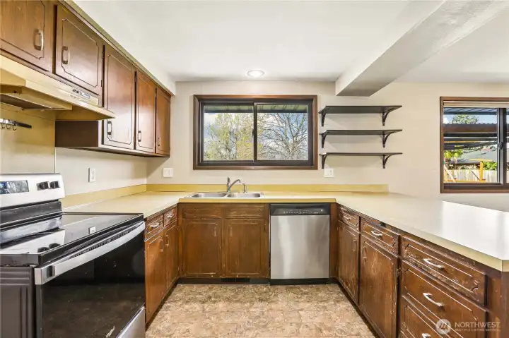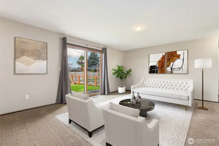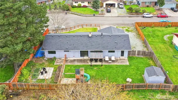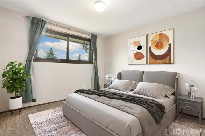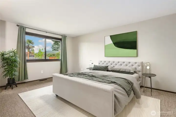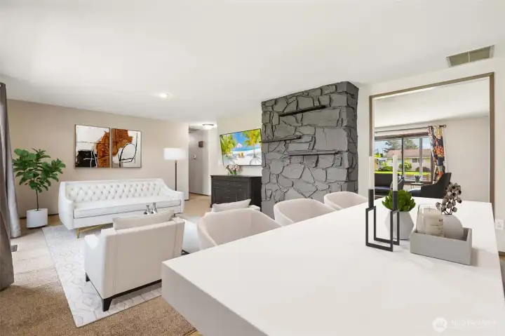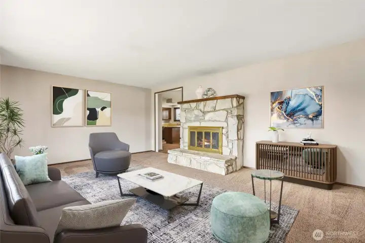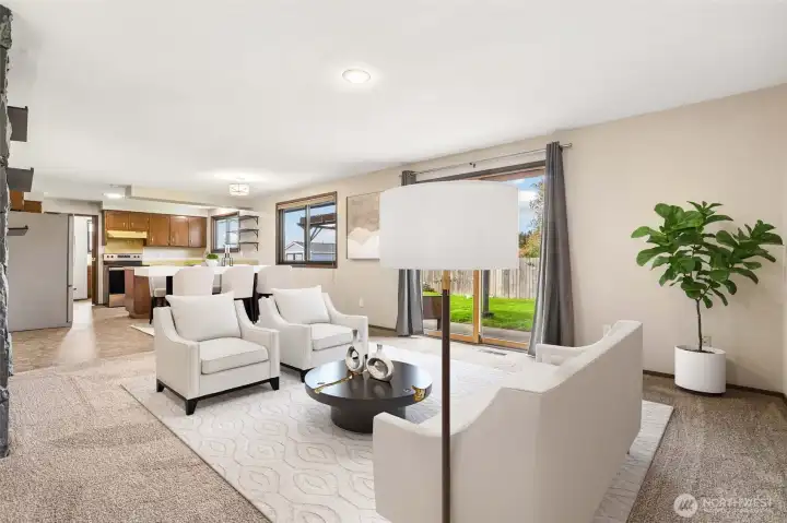 Welcome to this well-located Mount Vernon hill rambler offering comfortable single-level living on a quiet dead-end street with minimal traffic and noise. This 3-bedroom, 2.25-bath home sits on a spacious lot and has been thoughtfully improved with key system updates already completed. Recent upgrades include a newer roof, newer furnace, updated double-pane windows, new flooring throughout, fresh interior paint, removal of all popcorn ceilings, and improved attic insulation upgraded to R35. The living space has been opened up with a pass-through, creating a more functional and connected layout between the kitchen, dining, and family room with fireplace—ideal for everyday living and entertaining. A separate living room features a retro stone fireplace and ample natural light. The primary bedroom includes an attached bath, and all bedrooms are well-sized. A utility room with mudroom and bathroom access off the garage adds convenience. Outside, the front landscaping has been recently redone, while the fully fenced backyard offers a patio space for relaxing or entertaining, along with a large storage shed. The lot also provides ample room for RV, boat, or additional parking. A solid home with major updates already in place, ready for its next owner to move in and make it their own.