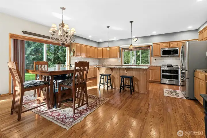 Set on a shy acre, this impeccably maintained home strikes the perfect balance of space, privacy & PNW charm. Framed by mature evergreens & thoughtfully designed landscaping, the setting feels serene and secluded—yet remains just minutes from town. The kitchen flows seamlessly into the family room, forming the true heart of the home—ideal for gathering with friends or enjoying a quiet night by the fire. Features include a large island perfect for casual seating, double ovens, a pantry and abundant cabinetry for exceptional storage. The main level also offers an office behind French doors, the formal living and dining rooms have lovely, coffered ceilings- ready for Holiday's or everyday! . Upstairs, spacious bedrooms provide flexibility for a variety of lifestyles, while the primary suite offers a peaceful retreat overlooking the backyard. The spa-inspired ensuite features 2 walk-in closets, dual vanities & a soaking tub, perfect for unwinding at the end of the day. A generously sized bonus room adds even more versatility, whether for work, play, or fitness. Outdoors, the expansive yard, patio, and gazebo invite you to garden, entertain, or simply relax and take in the natural surroundings.Combining acreage, privacy, and convenient access to Monroe’s shops, dining, and commuter routes, this property delivers a lifestyle that’s increasingly hard to find. Also, the attached three-car garage provides plentiful shelving and a loft for your seasonal goods. All this and much more!