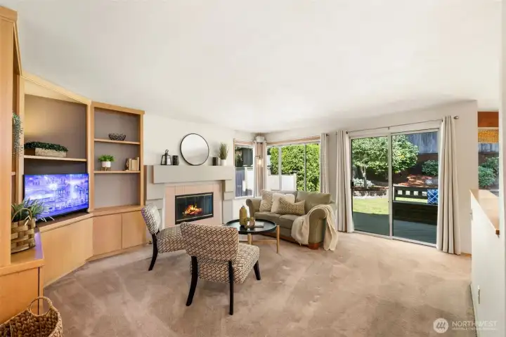 Comfort meets convenience in this Family Room anchored by a classic gas fireplace just steps from the Kitchen.