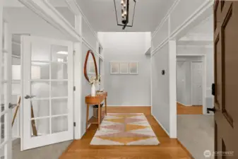 Welcome to an elevated offering in the coveted Summer Meadows enclave of Sammamish, where refined design meets modern functionality. Thoughtfully reimagined, this home showcases a full-scale interior modernization with new architectural doors, designer hardware, curated lighting, and a cohesive, sophisticated palette throughout. A versatile front room is enhanced by French doors and a custom-built Murphy bed, creating a seamless blend of elegance and flexibility. The kitchen is appointed with premium-grade appliances, including a Bosch quiet-wash dishwasher, dual-oven range, convection microwave, and a split-door refrigerator—designed for both elevated entertaining and everyday ease. The primary suite presents a spa-inspired retreat with a custom walk-in shower and designer tile, while secondary baths reflect updated, modern finishes. Year-round comfort is ensured with central A/C and a striking two-way gas fireplace with remote start.Thoughtful enhancements continue with a bespoke laundry room featuring custom cabinetry and folding station, and a fully outfitted garage with EV charging, built-in storage, and upgraded systems. Outdoors, enjoy a private, fully fenced setting with designer pavers and professionally curated landscaping, offering a serene extension of the home. A rare opportunity to own a move-in ready, home in one of Sammamish’s most desirable communities with convenience to nearby parks, Pine and Beaver Lakes, shopping, I-90. Pre-inspected!