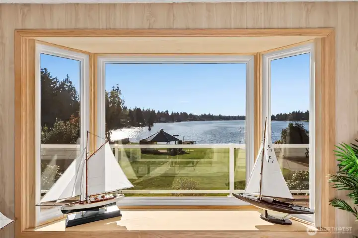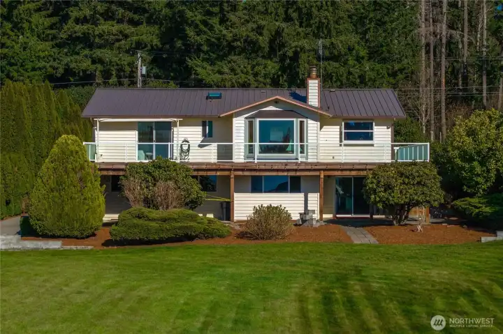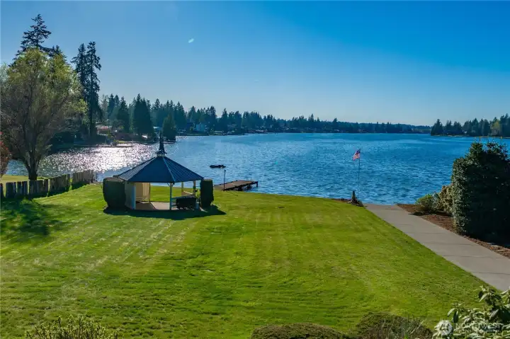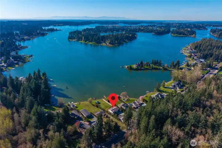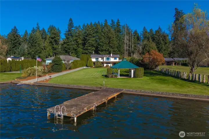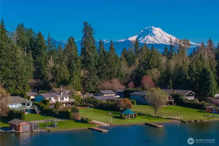 Rare opportunity to own exceptional no-bank, western-facing waterfront on coveted Lake Tapps. Set on an expansive .59-acre lot with 113 feet of frontage, this property delivers the ultimate lake lifestyle with breathtaking sunsets and sweeping open-water views. A private boat launch makes getting on the water effortless, while generous outdoor space provides endless opportunities for entertaining, recreation, and future vision.The home offers 3 bedrooms and 2.25 baths with multiple living spaces designed for comfort and flexibility. A spacious living room is highlighted by an oversized bay window capturing stunning lake views, while the family room and dining room create inviting gathering areas. The rec room with built-in bar is perfect for entertaining after long summer days on the water. An oversized utility/mechanical room adds functionality, and the attached 572 sq ft garage provides additional convenience.Car enthusiasts and hobbyists will appreciate the detached 768 sq ft garage, along with RV parking and abundant space for guests. Whether hosting waterfront gatherings, storing boats and toys, or simply enjoying the peaceful setting, this property offers rare versatility.Served by an individual private well and located in the desirable White River School District, this exceptional waterfront estate combines privacy, space, and an unbeatable Lake Tapps lifestyle. A truly special opportunity to enjoy level waterfront living with unforgettable sunset views.