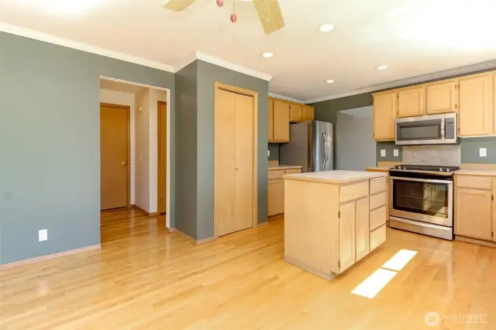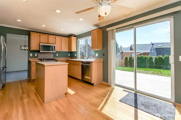 Nestled in the highly desirable Kentridge area, this beautiful home welcomes you with gleaming real hardwood floors and high ceilings amplifying the light and open feel. A formal living room, dining room, and family room with a wood-burning fireplace create gracious, connected living spaces. The Eat in Kitchen features beautiful hardwood floors, stainless steel appliances and plenty of work and storage and there is a sliding glass door to a spacious deck and a private fenced backyard-perfect for outdoor living. The open floor plan adjoins the kitchen to the family room, offering great spaces for gatherings. Upstairs, the expansive primary suite includes a closet ready for your organization and a private bath with a walk-in shower, soaking tub, and double vanity sinks. There are three additional bedrooms, two of which offer a Mountain View and would be ideal for an office. This home is move-in ready, inviting you to simply unpack and enjoy!