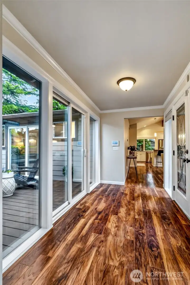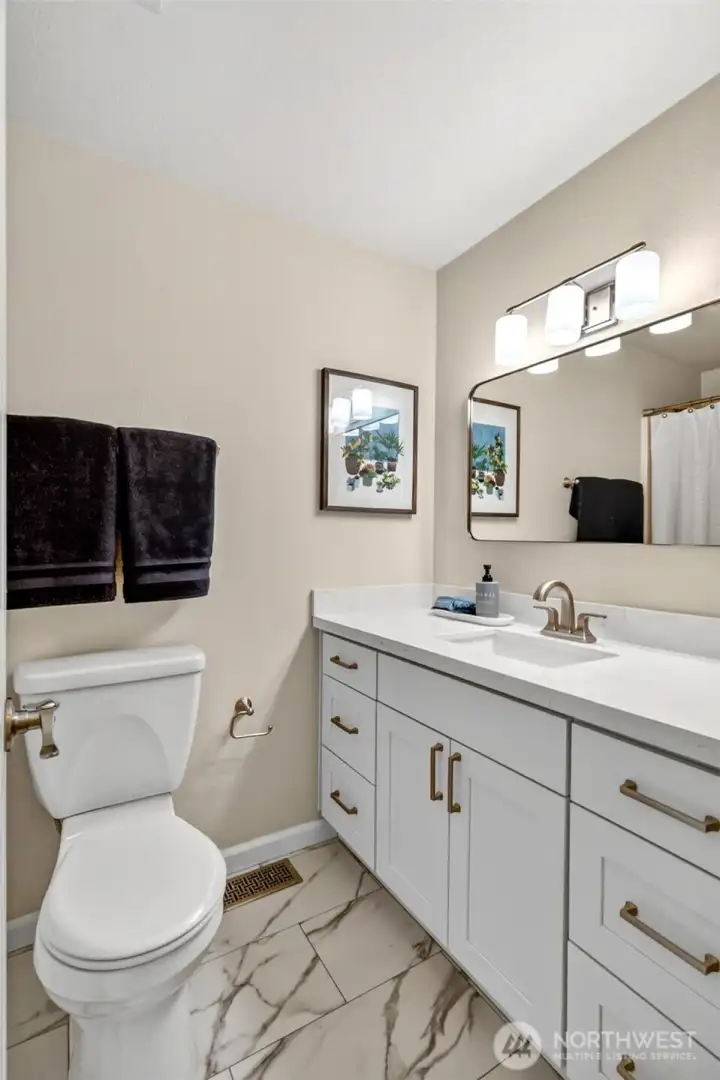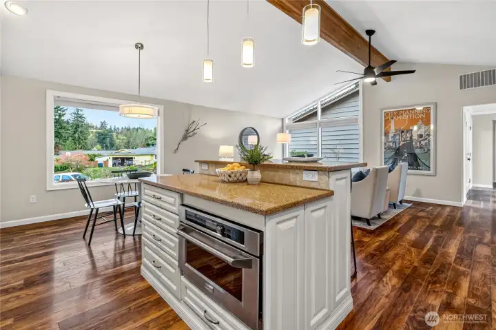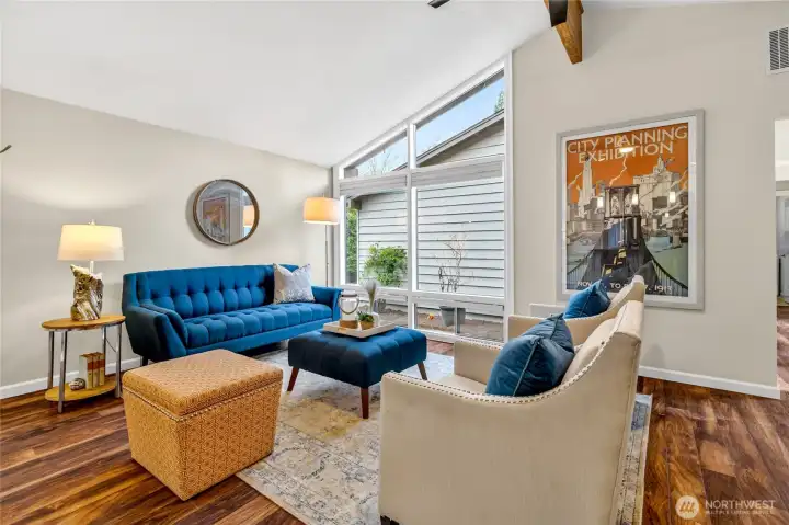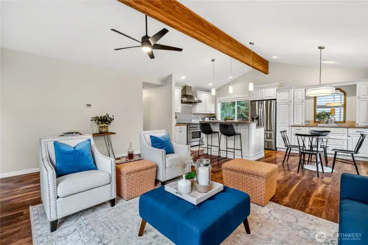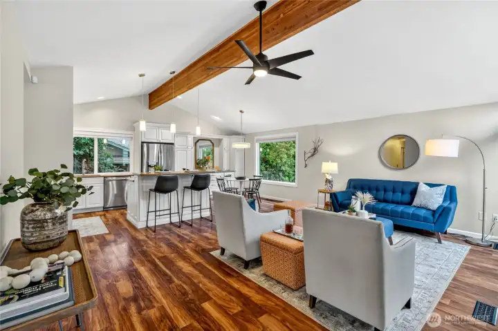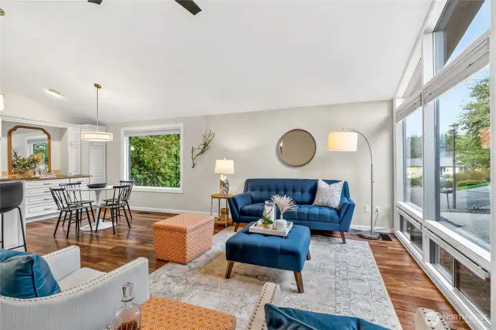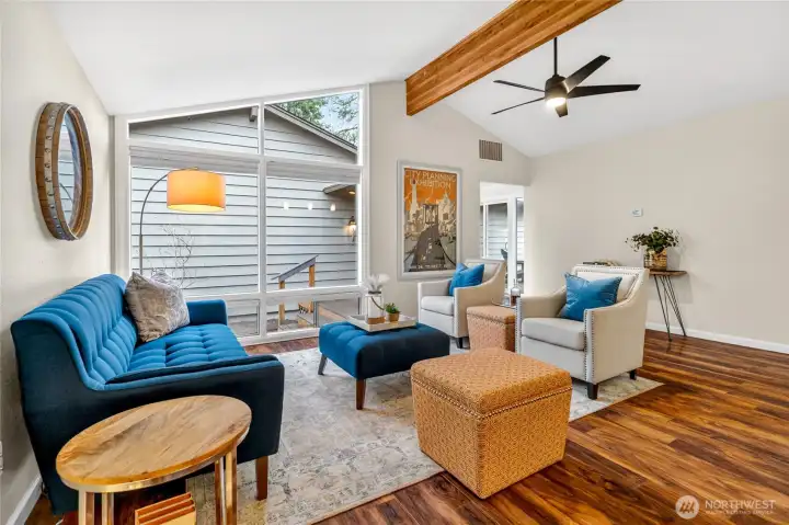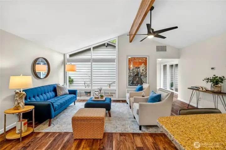 Not your average home—and that’s exactly the point. With mid-century influence and a layout you don’t see every day, this home is designed around connection, light, and space. A private courtyard entry welcomes you in, while a glass-encased breezeway links two distinct wings—creating a seamless indoor-outdoor flow. Vaulted ceilings and an airy layout lead into a remodeled kitchen featuring a large island, commercial BlueStar range, and extensive cabinetry—ready for everything from quiet mornings to a full house. Both bathrooms have been fully remodeled, including a primary suite with its own ¾ bath. A 2016 addition introduces a spacious bonus room—ideal for movie nights, game days, or a space that finally flexes the way you need it to. Step outside and the property truly shines. A terraced backyard rises behind the home, offering layered garden views, privacy, and multiple outdoor spaces—including a courtyard-style retreat with hot tub. A detached shop with power, water, and garage door adds incredible flexibility for projects, hobbies, workspace—or potential future ADU. Brand new roof (April 2026), remodeled bathrooms, new lighting, and fresh interior paint throughout—walls, trim, doors, and ceilings—paired with new lighting and laminate flooring, completes the home. Located in Fairwood West with a 2-car garage and generous driveway parking. A home that stands apart and that you won't forget.