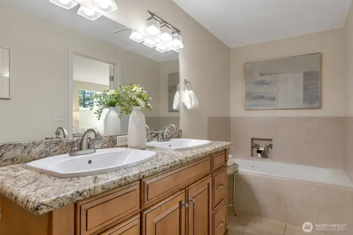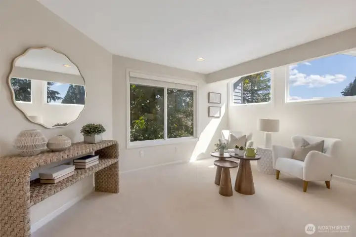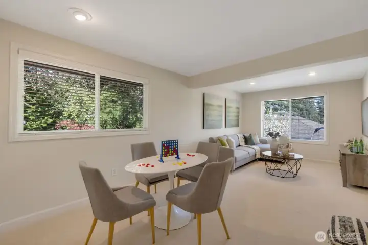 Welcome to this beautifully updated 3 bedroom, 2.5 bath two-story home located in the highly sought-after Lake Washington School District. This light-filled home offers a flowing, functional floor plan designed for both everyday living and entertaining. The main level features a spacious living room with a gas fireplace, a convenient half bath, laundry area, and a separate den/bonus room- perfect for a home office, playroom, or media space. Large windows throughout the home bring in abundant natural light and showcase views of the beautifully landscaped backyard. The upper level primary suite includes a 5-piece bath with a soaking tub and a walk-in closet. Recent upgrades include new high-efficiency gas furnace (2025), heat pump (2023), new carpet, fresh interior paint, updated bath and finished garage with epoxy floor. Tucked on a quiet cul-de-sac with a strong neighborhood community feel, residents enjoy friendly gatherings and a welcoming atmosphere. Just minutes from Juanita Village, Juanita Beach Park, The Village at Totem Lake, parks, shopping, and top-rated schools, this home offers the perfect blend of convenience and lifestyle. Move-in ready, pre-inspected, and thoughtfully updated- this Kirkland gem is ready to welcome you home.