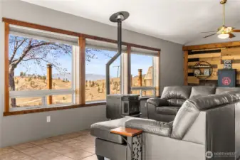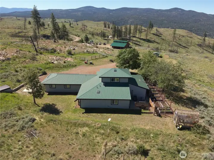 At the end of a country road lies your own personal Nirvana—20 private acres of peace, privacy, and breathtaking panoramic views. This custom-built, fully furnished 3-bed, 1.75-bath home features energy-efficient SIP construction designed to withstand the rugged terrain while providing year-round comfort. Vaulted ceilings, multiple skylights, and an open floor plan fill the home with natural light, while radiant heated tile floors and three heat sources keep you warm in every season. Beautiful maple cabinetry, built-in dining area, formal dining room, and a hidden stairway leading to the “Eagle’s Nest” office add charm and function. Move-in ready and thoughtfully equipped. Outside, enjoy a 2-car garage, a large Methow-style barn/shop with power and water, multiple outbuildings, a greenhouse, an electrified garden, and fenced areas ready for livestock. Three acres are fenced with corrals, and the property is fenced on three sides, bordering state land to the north for added privacy. Grow your own vegetables, raise animals, work remotely with Starlink, then relax in the hot tub beneath a sky full of stars—where wildlife roams, and even the Northern Lights may appear.