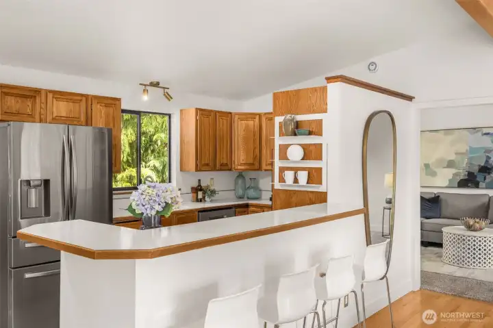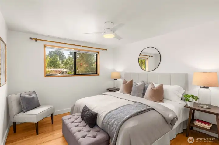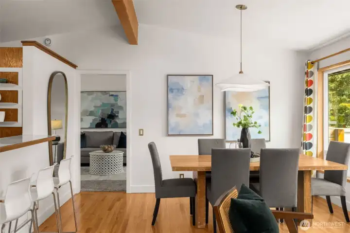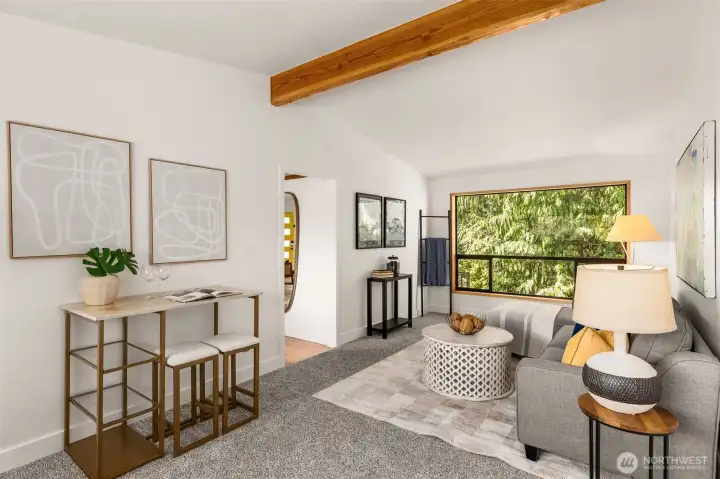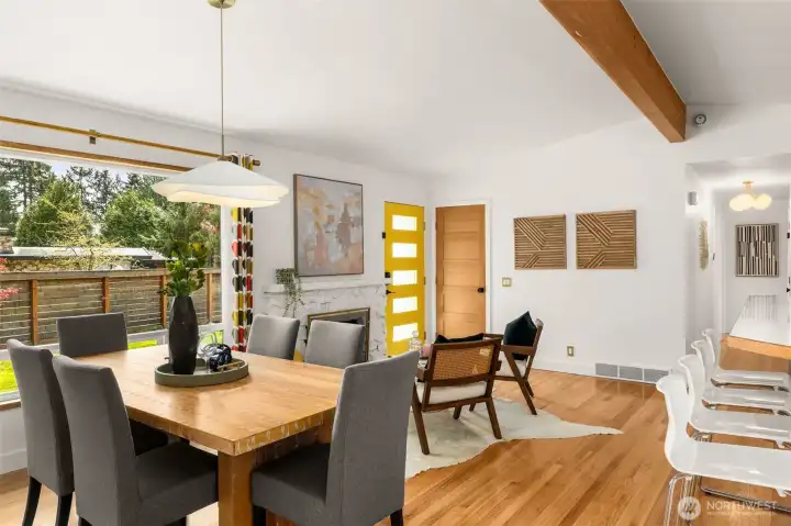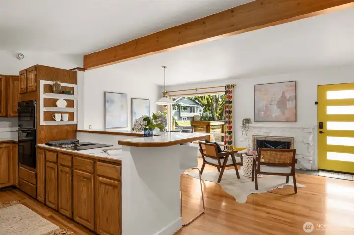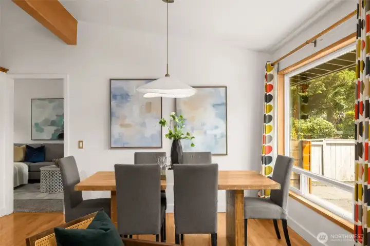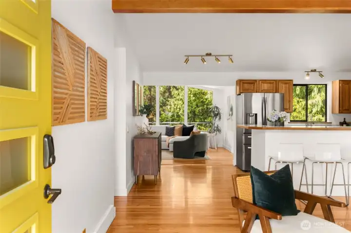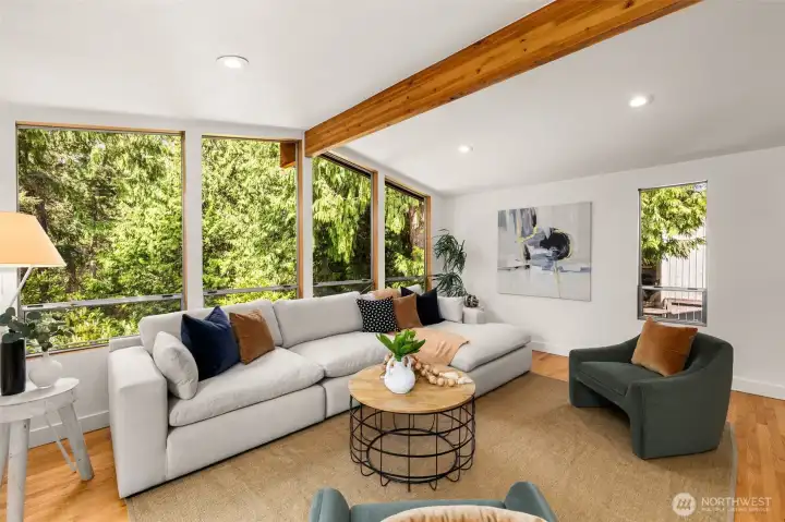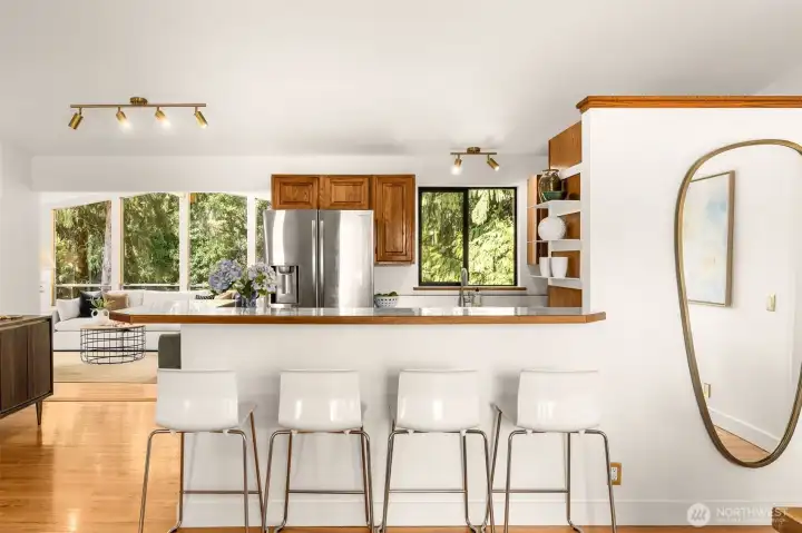 The trifecta: an exceptional location, design-forward mid-century modern style, and supremely functional layout that lives as beautifully as it looks. Tucked into a private, tree-lined setting on a serene ¼-acre lot, this spacious home offers the perfect blend of tranquility and convenience. Backing directly to the Seahurst Park greenbelt and just moments from Olde Town Burien’s restaurants, cafés, & the waterfront, the location is as special as the home itself. Light-filled & thoughtfully updated, this home offers multiple living spaces with flexibility for both entertaining and day-to-day life. Refinished hardwoods add warmth throughout, while an integrated smart home system & high-efficiency EV charger bring modern ease to everyday living. Recent improvements include new plumbing, upgraded electrical, two beautifully renovated bathrooms, new basement windows, and solid core interior doors-with additional updates enhancing the home throughout. The expansive composite deck is a true showstopper, overlooking a lush, tree-filled greenbelt that creates a sense of total seclusion and calm, where mornings feel restorative and evenings unwind beneath a canopy of trees. Paired with the inviting firepit area, the outdoor spaces offer a rare connection to nature and an effortless setting for gathering, relaxing, & entertaining. A dedicated woodshop provides the ideal space for projects, hobbies, or additional storage, completing this peaceful, idyllic Pacific Northwest retreat.