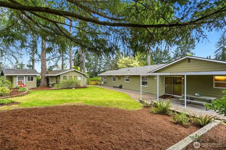 Tucked at the end of a cul-de-sac in Bellevue, this charming rambler offers a rare opportunity to make it your own. Set on a generous ¼-acre lot, the home combines space, privacy, and flexibility. Step inside and discover a thoughtful layout with a dedicated primary suite wing, creating a private retreat separate from the main living areas. Natural flow connects the living space to the backyard, where possibilities unfold. Whether you’re entertaining, gardening, or enjoying the outdoors, the covered patio extends your living space year-round. This home is full of flexible spaces to fit your lifestyle. An indoor office or shop area is perfect for a craft room, studio, or workspace. Outside, you’ll find a storage shed plus an additional flex shed, along with an impressive 380sqft detached shop, ideal for a future guest suite, game room, or creative retreat, with potential for ADU conversion (buyer to verify sewer connection and feasibility). With new sewer lines, a new hot water heater, and a pre-inspection completed, much of the heavy lifting is done. The home also features A/C and a generator for added comfort. Fresh paint provides a clean starting point, while the rest offers a blank canvas to build equity. Conveniently located near major freeways, shopping, dining, parks, trails, and highly rated schools—this is where convenience meets potential.