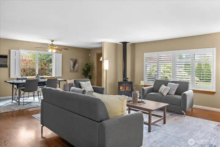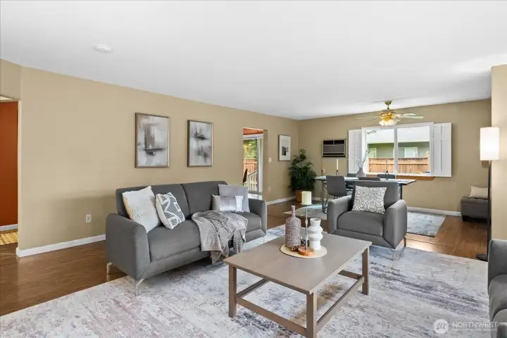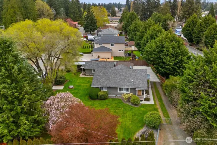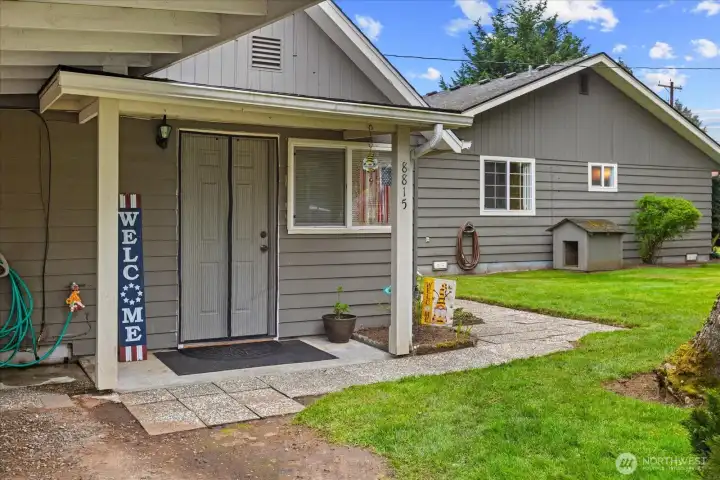 Spacious and versatile property on a fully fenced, level corner lot (.35 acres) in Marysville minutes from exit 200! The 1,472 sq ft main home offers 2 bedrooms and 1.5 baths with an open-concept layout, abundant natural light, and comfortable living spaces. Enjoy a large kitchen with eating area, ample cabinetry, and generously sized bedrooms and wide hallways for easy flow. The oversized utility room provides extra storage and leads to a private back patio and covered breezeway connecting to the garage. The attached 616 sq ft additional living space includes 1 bedroom, 1 bath, full kitchen, separate washer/dryer, its own power meter, and separate mailing address—has been rented for $1,200/month, offering great flexibility for extended living. Outside, the property features a circular driveway with access from both 88th St NE and 44th Dr NE, plus an attached carport, 2+ car garage with workshop space, and a fire pit perfect for gatherings. Plenty of room for parking, hobbies, or outdoor enjoyment. Conveniently located minutes from Seattle Premium Outlet mall, Quilceda Village and Tulalip Resort for shopping, dining, and entertainment, with easy access to I-5 and Hwy 9.