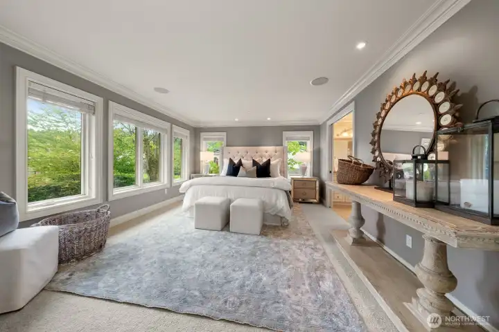 From the moment you step inside, a sense of quality and calm sets the tone. Perfectly curated and ideally located on Mercer Island’s sought-after north end, this custom home showcases soaring ceilings, abundant natural light, and refined finishes throughout. Designed for both everyday living and effortless entertaining, the main level features an open-concept kitchen and family room, formal living and dining spaces, and a private office. Upstairs, the primary suite is a true retreat, complete with a fireplace, spa-inspired bath, and dual walk-in closets, along with three additional bedrooms and a dedicated media room. The private, professionally landscaped grounds create a seamless indoor-outdoor experience—featuring a stone patio, outdoor kitchen, gas fireplace, and a tranquil water feature. A spacious three-car garage adds convenience and generous storage. Ideally located just minutes from Seattle, Bellevue, and downtown Mercer Island, with easy access to Lake Washington, Lid Park Trail, and Luther Burbank Park. All within a top-rated school district and surrounded by scenic parks and miles of trails. Welcome home.