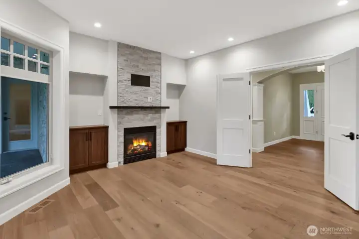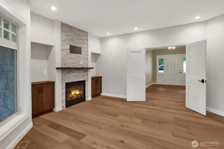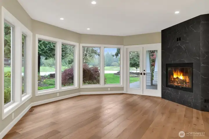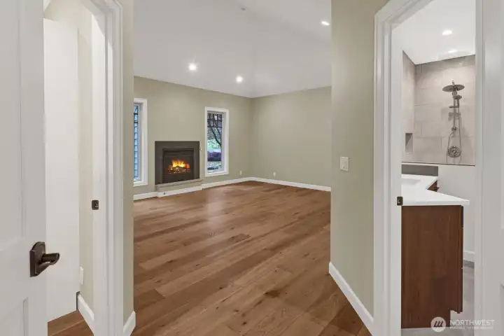 Step into an extraordinary showcase of luxury and design, where timeless elegance meets breathtaking golf course living on the prestigious 18th hole. This better-than-new masterpiece with pond and golf course view offers a lifestyle reserved for the most discerning buyer. From the moment you enter, 8-inch brushed white oak floors set a tone of warmth and sophistication, complemented by four statement fireplaces that create an ambiance of refined comfort throughout. The main-level primary suite is a private sanctuary—featuring its own fireplace, an expansive custom walk-in closet, and a spa-caliber bath with a stunning glass-enclosed shower designed for indulgence. The chef’s kitchen is both striking and functional, appointed with built-in stainless steel appliances, rich granite countertops, an impressive island, and designer lighting—perfect for hosting unforgettable gatherings. Every detail has been thoughtfully elevated, from electric shades to dual laundry rooms and seamless indoor-outdoor flow. Upstairs, a grand entertainment lounge with its own fireplace opens to a spectacular balcony—your front-row seat to tranquility and manicured greens. A private guest suite with adjoining bath ensures comfort and privacy for visitors. Engineered for efficiency and peace of mind, the home includes dual furnaces, heat pump, air conditioning, on-demand hot water, a 50-year presidential roof, and fresh designer paint throughout. This is more than a home—it’s a statement.