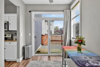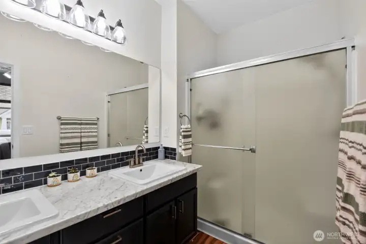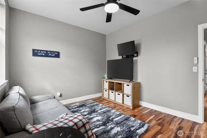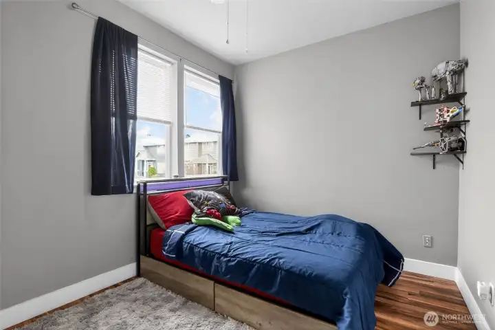 Desirable Townhome at The Commons at Fircrest, across from greenbelt on very low traffic road lined with flowering cherry trees, welcomes you with mature cheery landscaping and stately front door. Well-maintained 4-bedroom, 2.5-bath home features comfortable living and dining areas centered around a gas fireplace with built-ins. Bright kitchen, which is open to your living space includes a pantry, stainless steel appliances, and ample, freshly painted white cabinets with crown molding. Upstairs, you'll find all four bedrooms along with a utility room—washer and dryer included. Primary suite spacious bath with updated double vanity, walk-in shower, and walk-in closet. Added features include air conditioning system with new ceiling fans on both levels for efficient circulation and laminate wood flooring throughout. Fully fenced, landscaped yard with paved alley access, sprinkler system, private patio, and attached 2-car garage. HOA maintains the landscaping weekly. Across the street, you have access to a nature trail walk around a calming pond. In the University Place School District, with award winning Curtis HS, and located minutes from JBLM, I-5, Hwy 16, Fircrest G and GC.