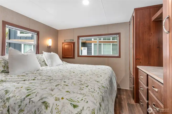 The largest lot in Wildwood offers a rare park-like setting designed for lake living at its best. With extra breathing room, mature landscaping, and direct access to open green space, this property feels private yet connected to the heart of the community. Whether you're hosting summer gatherings or enjoying a quiet weekend retreat, this is the place where memories are made. Inside, you’ll love the thoughtful layout featuring a king-sized primary sleeping area, split loft for guests, abundant natural light, and seamless flow that maximizes comfort and functionality. Large windows bring the outdoors in, creating a bright and welcoming atmosphere after a full day on the lake. Step outside to the expansive 12x20 covered deck — perfect for morning coffee, evening BBQs, and long board-game nights with friends. Just beyond, the common green space and playground extend your backyard, giving everyone room to play and relax. With beautiful landscaping, ample storage, and convenient boat parking, this well-appointed cottage makes lake life easy and carefree. Enjoy access to all that Wildwood and Lake Whatcom have to offer in a fun, active, and welcoming community. Check out 'Wildwood Lakefront Cottages' on Facebook, Instagram, and Youtube — see you at the lake!