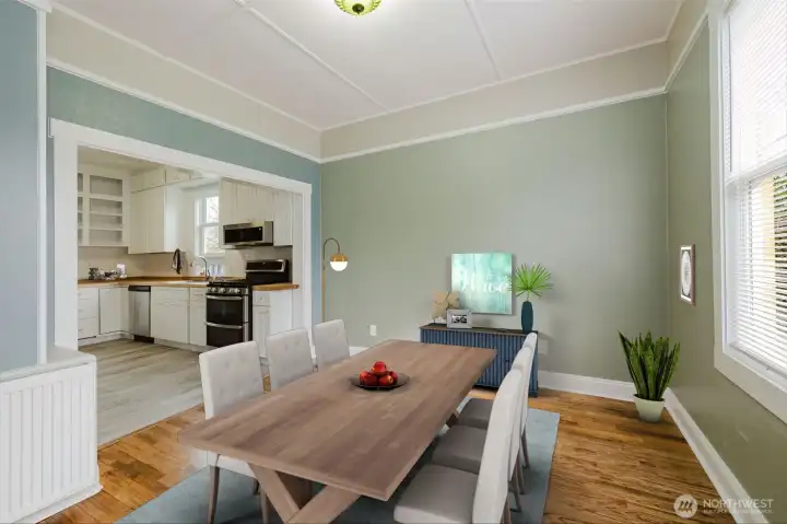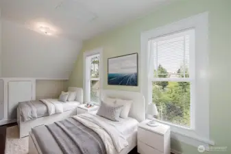 Completely reimagined while honoring its 1905 charm, this stunning 4-bedroom, 1.5-bath home offers the perfect blend of historic character and modern comfort in the heart of Bremerton. Be in THE LOCATION! Ideally situated next to Evergreen Rotary Park, this move-in ready home captures breathtaking views of the Puget Sound to the north and east, and the Olympic Mountains to the west.Inside, you’ll find a fully remodeled interior featuring new windows, appliances, cabinetry, and beautiful flooring throughout. The main floor offers a convenient primary bedroom and bath, while water-circulated radiators provide efficient, comfortable warmth. Upstairs, heated floors add an extra touch of luxury, and a hidden stairway leads to a charming attic space full of possibilities.The 420 sq ft dry basement provides flexible space—perfect for a yoga studio, kayak storage, or hobby area. Go exploring—bring the kayaks and the bikes and enjoy everything this incredible location has to offer!Enjoy unbeatable convenience just under a mile from the Seattle–Bremerton Ferry and Olympic College, making commuting a breeze. Step outside your front door to experience park-side living with farmers markets and community events just across the street. The private, fenced backyard features an inviting entertainment deck—ideal for relaxing or birdwatching.