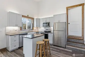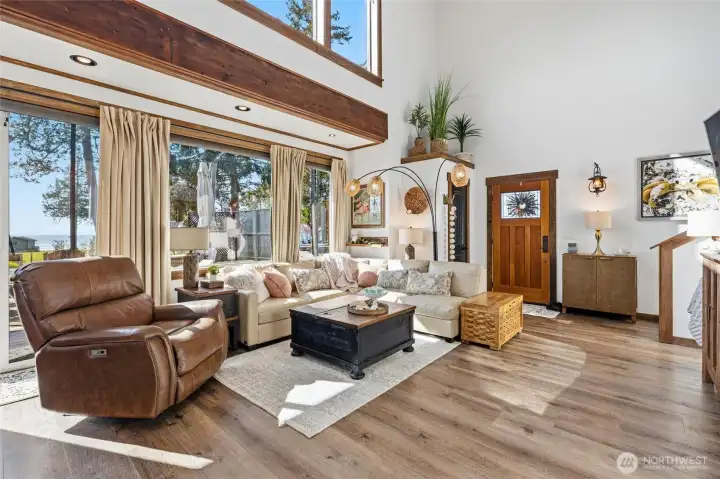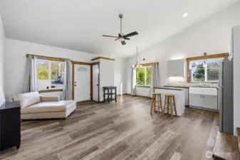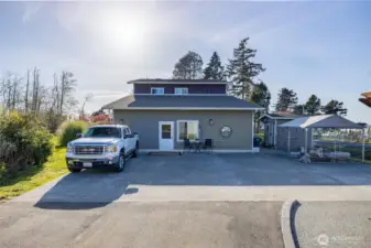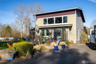 Welcome to this one-of-a-kind 3-bed, 2.75-bath home offering stunning views, versatile living, and exceptional outdoor space. Wake up to serene water vistas from the primary bedroom and unwind with breathtaking sunsets from anywhere on the property. Designed for both comfort and functionality, the home features spacious living areas flooded with natural light, a well-equipped kitchen and seamless indoor-outdoor flow including a fully functional ADU providing excellent flexibility for guests, rental income, or multigenerational living. The property truly shines with its brand new double-insulated 24x30 ft shop with heat & power ideal for hobbies, storage, or business use. Garden enthusiasts will appreciate the dedicated garden spaces ready for planting, relaxing, and enjoying the outdoors. Relax on the composite deck to take in endless sunsets. With tons of updates including new asphalt & pathways, mini splits throughout, floors & paint this home has it all. Situated on a double lot that includes 2 ownership shares of the nearby beach! Whether you're seeking a full-time residence or a private retreat, this property offers a rare combination of waterfront living, usable land, and income potential!