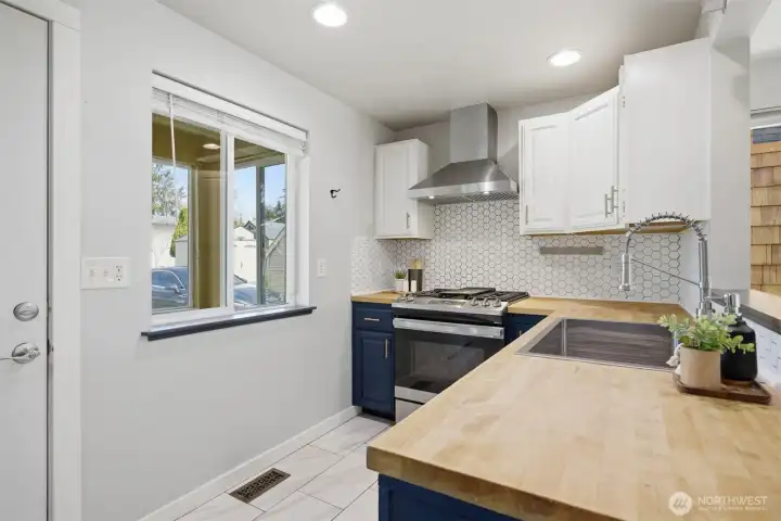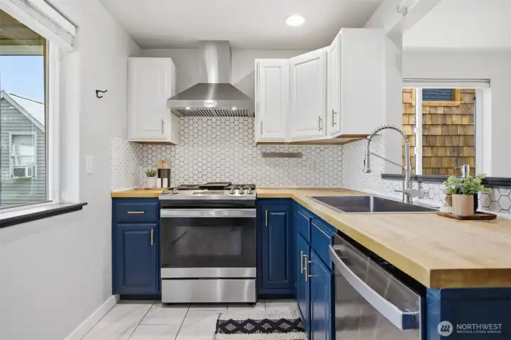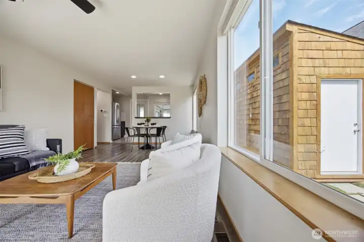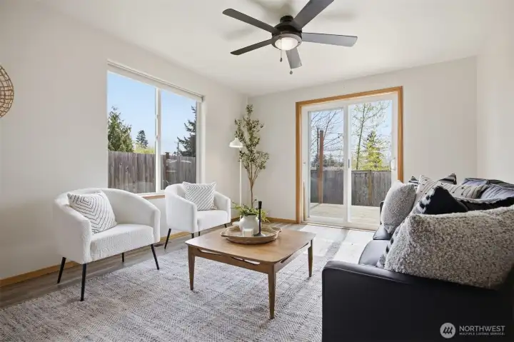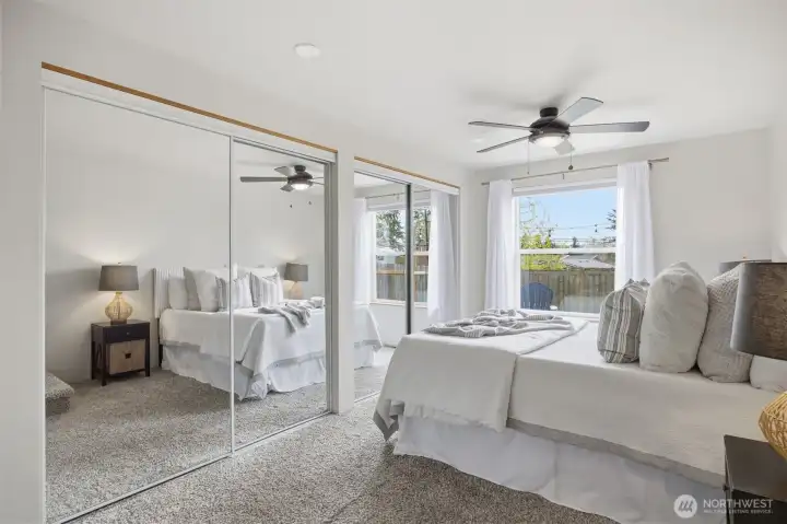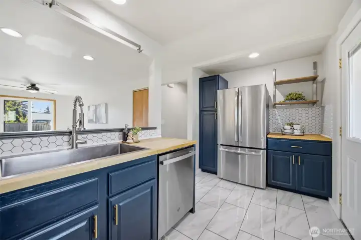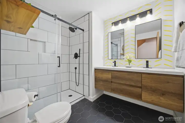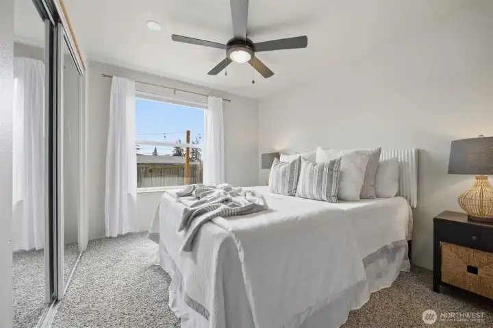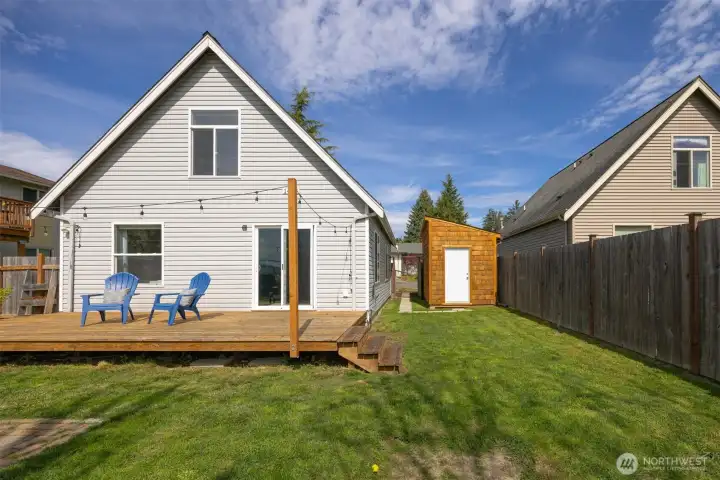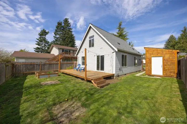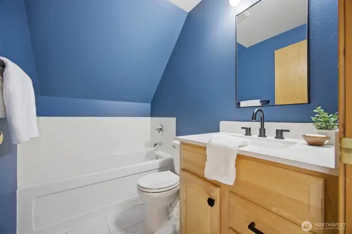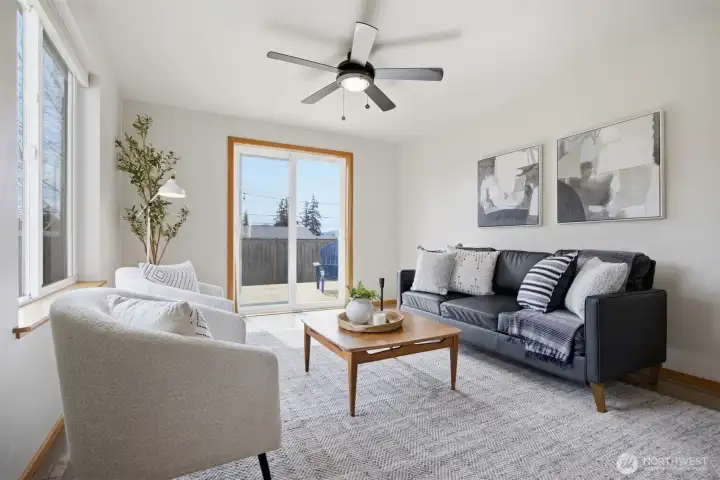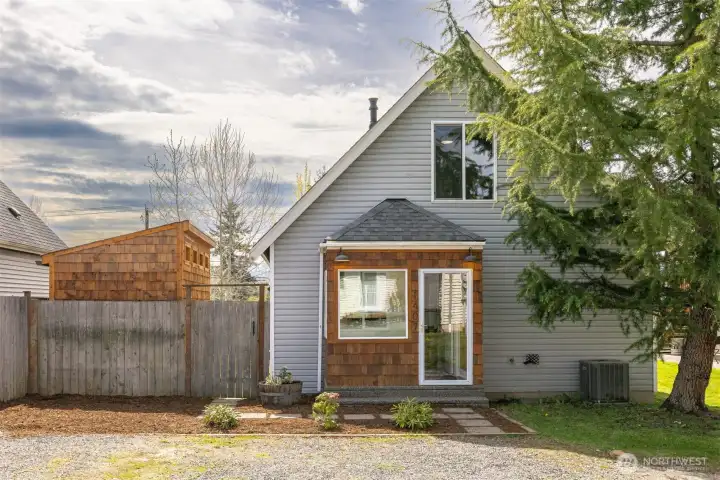 Minutes from trails, Lake Whatcom, downtown, & I-5, this home sits in one of Bellingham's most convenient corridors, where a morning hike, coffee run, & an easy commute north or south are all just part of the routine.Inside, the remodeled kitchen opens right into the dining & living area. New flooring, countertops, & appliances make it feel done right, & that same ease continues out to an updated deck & a flat, sunny backyard. Whether you're hosting or just enjoying a quiet evening outside, inside & out feel like one space. The primary suite is on the main floor with double closets & a fully remodeled bath featuring a walk-in shower, new tile & flooring, an updated vanity, & refreshed mirrors & lighting. The new mudroom at the front of the house means the wet gear & muddy boots stay where they belong, before you ever get inside. Upstairs, two separate & sun-filled bedrooms share a second remodeled bathroom with new flooring, a fresh sink & countertop, updated lighting & mirrors, & new paint. A custom built-in cabinet & enclosed laundry area in the hallway keeps things tucked away. A storage shed gives you a dedicated home for the bikes, kayaks, skis, & whatever else accumulates when you actually take advantage of living here. And with Galbraith, Lake Whatcom, & downtown all within easy reach, you will!
