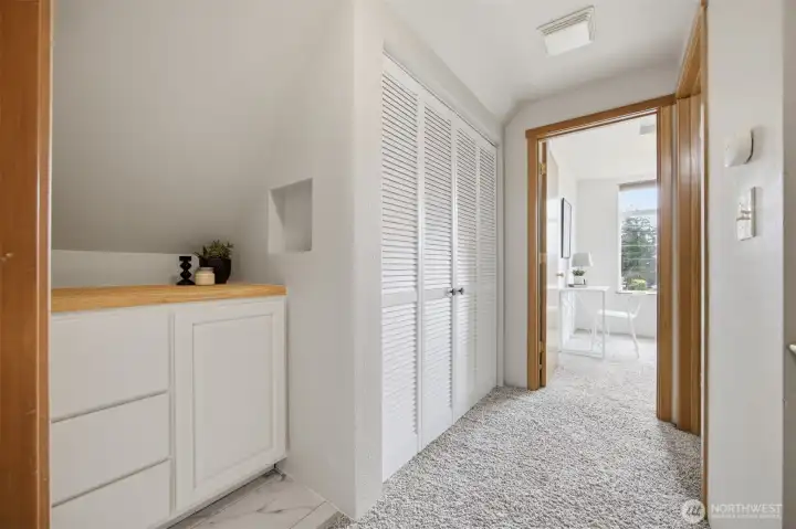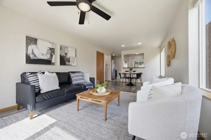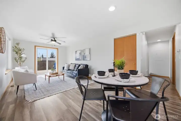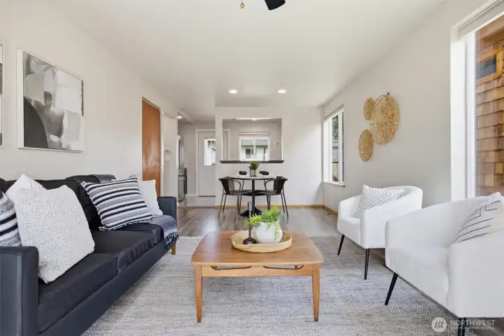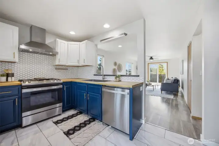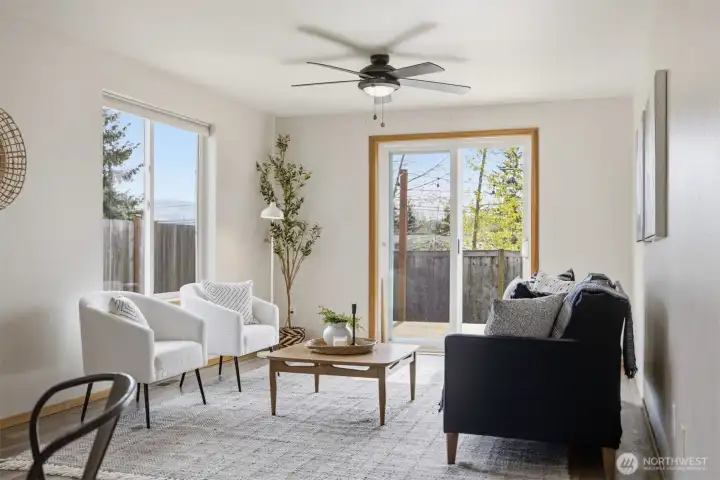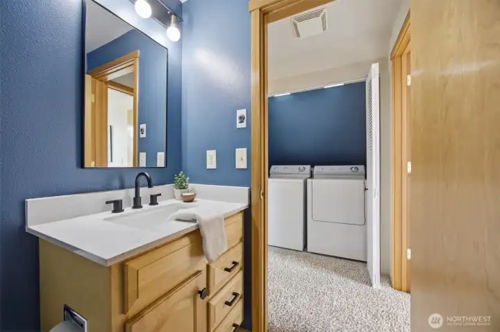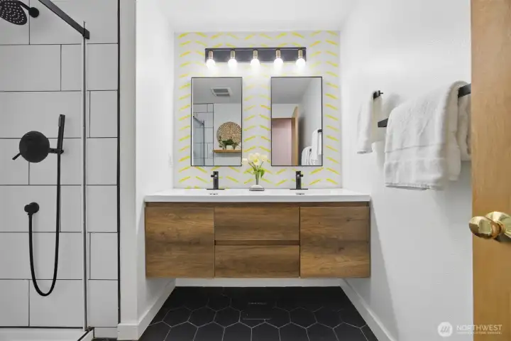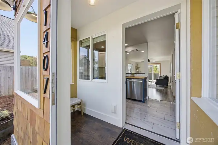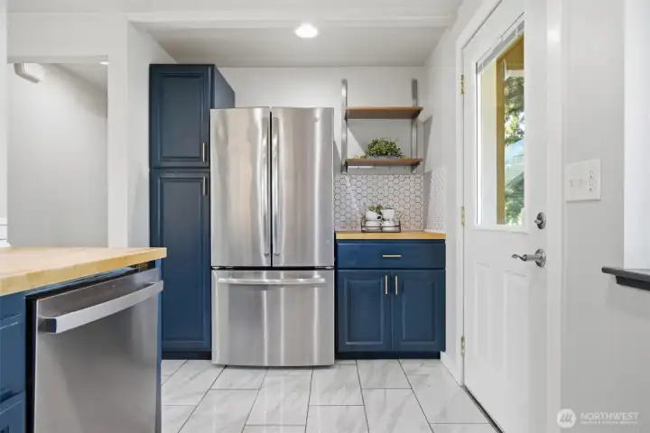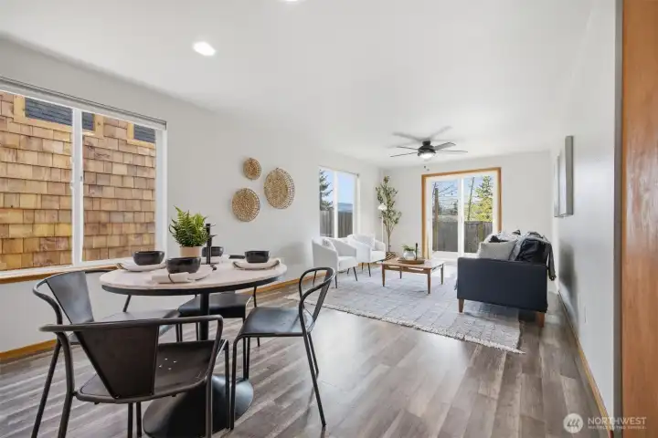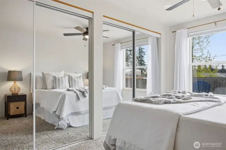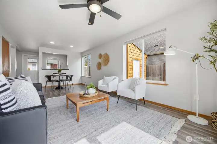 Minutes from trails, Lake Whatcom, downtown, & I-5, this home sits in one of Bellingham's most convenient corridors, where a morning hike, coffee run, & an easy commute north or south are all just part of the routine.Inside, the remodeled kitchen opens right into the dining & living area. New flooring, countertops, & appliances make it feel done right, & that same ease continues out to an updated deck & a flat, sunny backyard. Whether you're hosting or just enjoying a quiet evening outside, inside & out feel like one space. The primary suite is on the main floor with double closets & a fully remodeled bath featuring a walk-in shower, new tile & flooring, an updated vanity, & refreshed mirrors & lighting. The new mudroom at the front of the house means the wet gear & muddy boots stay where they belong, before you ever get inside. Upstairs, two separate & sun-filled bedrooms share a second remodeled bathroom with new flooring, a fresh sink & countertop, updated lighting & mirrors, & new paint. A custom built-in cabinet & enclosed laundry area in the hallway keeps things tucked away. A storage shed gives you a dedicated home for the bikes, kayaks, skis, & whatever else accumulates when you actually take advantage of living here. And with Galbraith, Lake Whatcom, & downtown all within easy reach, you will!