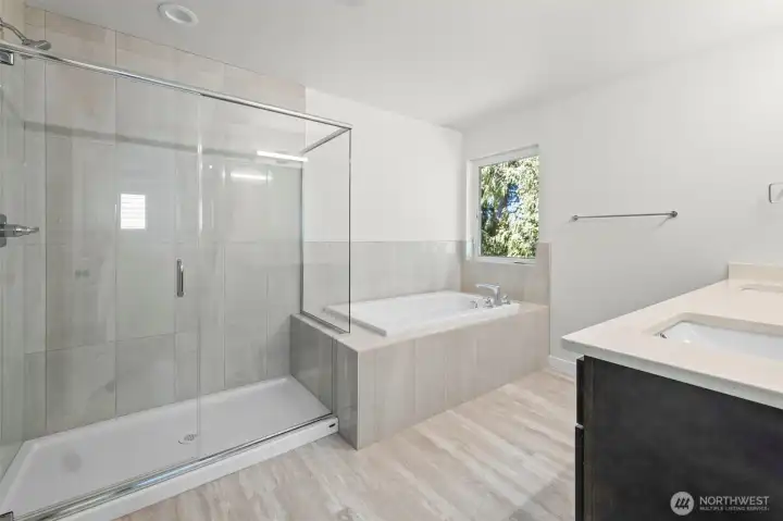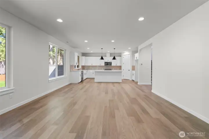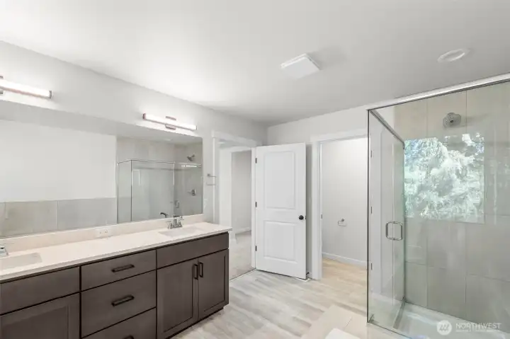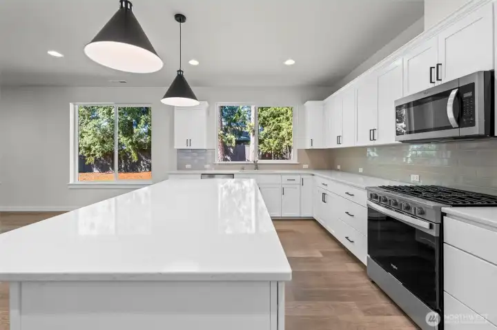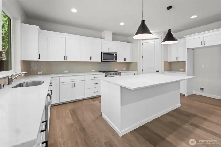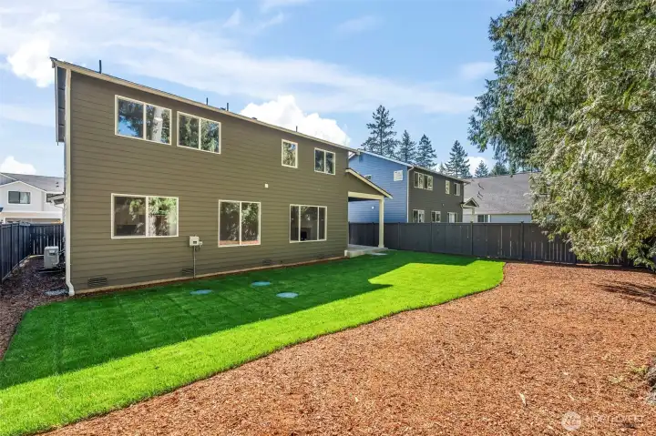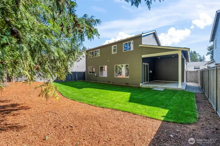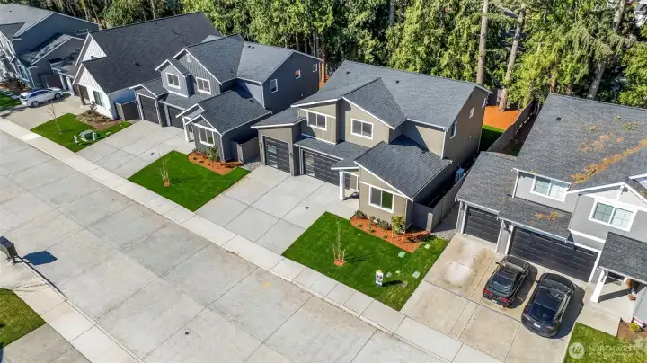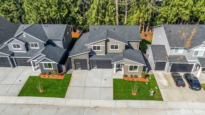 Mountain Glen, a Fabulous New Home Community in Puyallup. Final opportunity in this sought-after cul-de-sac community, ideally located near schools, shopping, dining & everyday conveniences. Move in just in time for summer and enjoy the perfect blend of comfort, style, and functionality. Designed with today’s lifestyle in mind, the open-concept main floor offers seamless indoor-outdoor living. The spacious great room w/ cozy gas FP flows effortlessly into the dining area and beautifully appointed kitchen—complete w/ quartz countertops, center island, tile backsplash, stainless steel appliances incl gas range, soft-close cabinetry, and a generous walk-in pantry. Step outside to your covered patio overlooking a fully fenced and professionally landscaped backyard—perfect for entertaining or relaxing all season long. Upstairs, retreat to the private primary suite featuring a walk-in closet, and convenient direct access to the laundry room. The spa-inspired 5-piece ensuite includes a glass and tile shower, soaking tub, and dual vanities. Additional highlights include designer-selected finishes, white millwork, wrought-iron railing, 8' interior doors on the main level and heatpump with A/C for year-round comfort. Rare 3-car garage includes a 10' high third bay door—ideal for larger vehicles, recreational gear, or extra storage. Builder included upgrades: mandoor in garage, upper/lower cabinets in laundry, coffered ceiling in primary & direct access to laundry room from Primary.