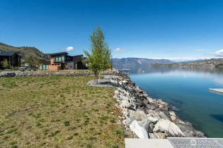 Prime lake living awaits at Lot 11 Chelan Bay (104 Bass Lane)! This flat, corner, WATERFRONT lot is just 1 mile from downtown Chelan and offers an unbeatable combination of location, convenience, and lifestyle. All utilities are available including water, power, sewer, and fiber making it ready for your dream build. Enjoy easy lake access with newly constructed stone swim steps and a brand-new, state-of-the-art shared dock. With over 8,800sqft above the high-water mark and a generous 3,240sqft building footprint (buyer to verify), this lot can accommodate a spacious two-story home similar to neighboring properties, which range from 3,800–4,400sqft plus garages. Lot 11 is one of only four residential parcels in Chelan Bay approved for SHORT TERM RENTALS by both zoning and HOA (see CCRs), a rare and valuable opportunity on the lake. Adjacent Lot 12, 105 Bass Lane (MLS#2506682) is also available, purchase together for a larger estate with endless possibilities. Life is good at Chelan Bay, don’t miss this exceptional opportunity!