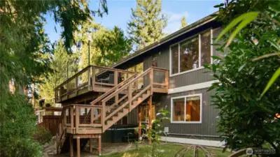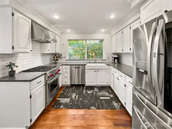Tucked away on a quiet cul-de-sac in the Summer Meadows community, this thoughtfully updated 4-bedroom, 2.5-bath contemporary blends modern comfort with everyday functionality. Rich hand-scraped hardwoods flow through the main level, leading to a light-filled great room enhanced by a NanaWall that opens to the outdoors. The kitchen is both refined and practical, featuring quartz countertops, a custom island, and high-end Wolf, Bosch, and LG appliances. A main-floor primary suite offers a serene escape with a tastefully renovated, spa-like bath. The lower level provides three additional bedrooms, a full bath, and an inviting recreation room with fireplace—ideal for flexible living. Step outside to a private, fully fenced backyard surrounded by mature greenery, complete with a spacious composite deck, hot tub, and easy-care turf. Additional amenities include air conditioning, a presidential roof, and a two-car garage. Convenient to nearby parks, Pine and Beaver Lakes, shopping, I-90, and located within the Issaquah School District, including highly regarded Skyline High School.
