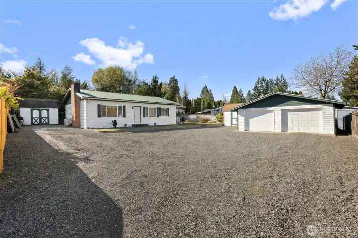 Are you looking for freedom from rules, regulations and HOAs? Check out this lovely South Everett home that's close to everything and perfect for also running a home business. Lots of great parking, gated driveway between quiet businesses, and fully fenced to keep your animals in. Metal roof and heat pump for high-end function and value. Big kitchen and living room are the heart of this classic home. Lots of space for cooking and eating. Opens to the covered back country porch for bbqs and quiet summer evenings. Living room with a brick fireplace and big windows for charm and space. Hall bath is the half and the primary bath is the 3/4, but the 2nd primary bath could be easily converted into a shower. Two car garage has workspace in the front and is plumbed for air. Loads of gravel parking. Three storage sheds for yard tools, and anything else you don’t want in your garage. Whether you're looking to run an auto repair, tax preparing or salon in-house, this is the perfect set-up to come in and do whatever you'd like to live in your space and work it too!