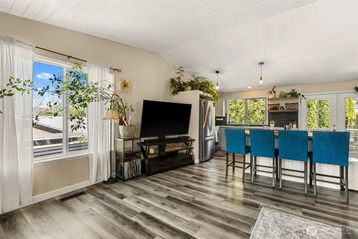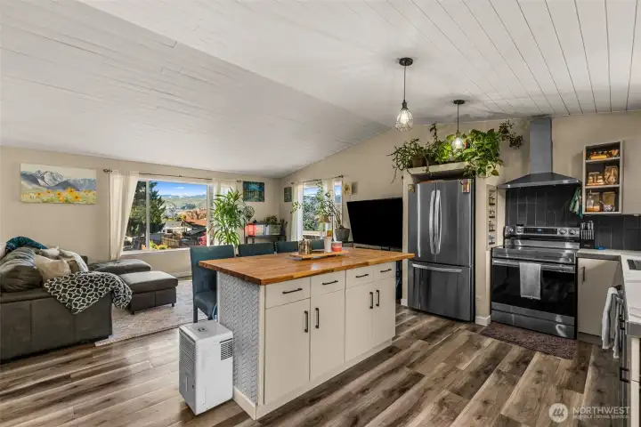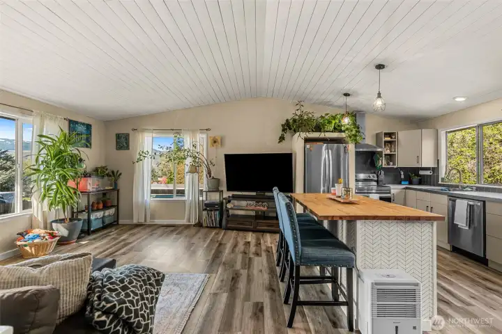 This charming 4-bedroom, 1.75-bath East Wenatchee rambler offers 1,649 square feet of beautifully updated living space. The open floor plan is filled with natural light, highlighting the durable LVP flooring and unique tongue-and-groove ceilings. Recent updates ensure modern comfort throughout. Outside, enjoy a manicured 0.16-acre yard with mature landscaping and clear views of the Mission Ridge night lights. The spacious back deck and patio create a perfect outdoor retreat, complemented by multiple outbuildings for ample storage. Ideally located near local schools and parks in a welcoming community.