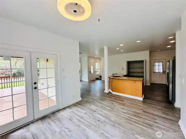 Dining Room with doors leading out onto large wrap around deck