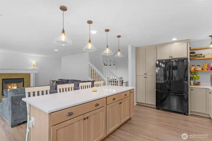 Beautifully refreshed 4 bed, 2.5 bath home offering over 2,500 sq ft of spacious living. Enjoy a huge complete kitchen remodel offering an oversized island with quartz counters - room for eating & entertaining, facing out toward the main living area for seamless connection. New interior paint, and a large open-concept floor plan perfect for everyday living. Expansive dining area, large landing pad at the top of the stairs. Primary suite suited for any size furniture + ensuite. Updated landscaping enhances curb appeal and outdoor enjoyment. Move-in ready with thoughtful updates throughout!