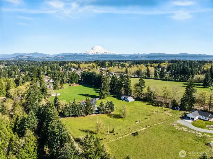 Country retreat on 2.48 level acres with room for all your people, projects, and toys. Updated 3,796 sq ft daylight home offers 4 beds, 3.25 baths, and wide-open living spaces framed by a dramatic wall of windows and vaulted ceilings offering an abundance of natural light. Gourmet kitchen boasts slab granite, walk in pantry, rich cabinetry, huge island with gas cooktop, stainless appliances, and abundant storage, all opening to the dining area and covered deck. Stay cool in the summer with central Air Conditioning. Big-ticket updates within the last 5 years include roof, windows, interior and exterior paint, remodeled baths, new garage doors, fresh asphalt driveway, and water heater so you can move in and enjoy. Downstairs is an entertainer’s dream with spacious rec room, modern wet bar, gas fireplace, and easy access to the patio and yard. With a little TLC you can swim and soak year-round in the private indoor pool and spa wing. Or transform this space into a sport court, Mother in Law Suite, or indoor pickle ball court. The possibilities are endless. The abundant amounts of parking also offers RV hookup for your recreational vehicles or extended guests. 3 car attached garage plus a massive detached shop with RV-height bay and dedicated workshop areas provide incredible parking and hobby space. Expansive fenced backyard with fire pit and covered outdoor living is ideal for gatherings, play, and pets all in the Graham community and highly sought after Bethel Schools.
