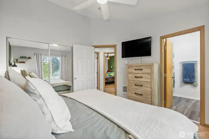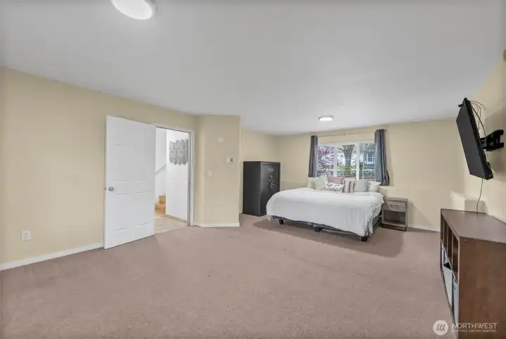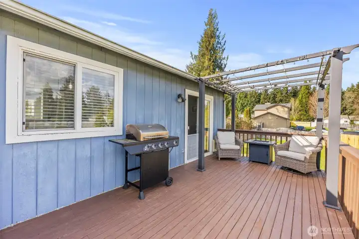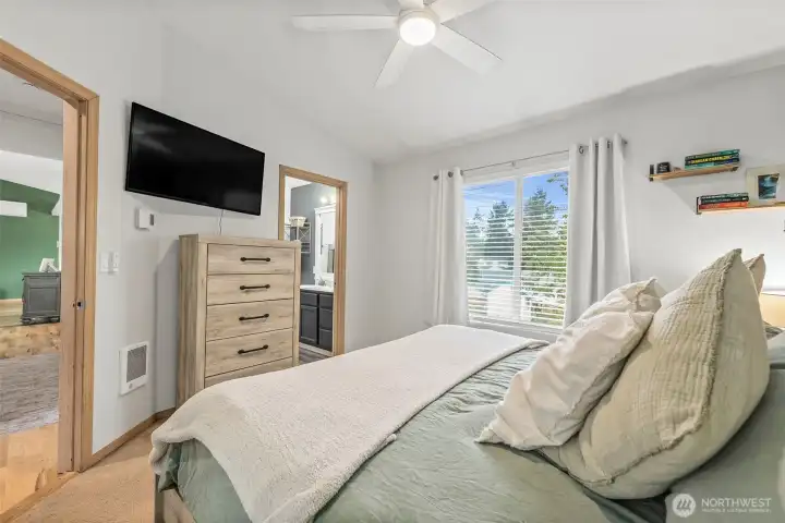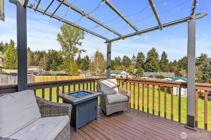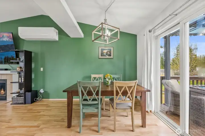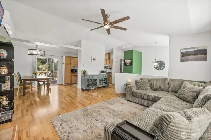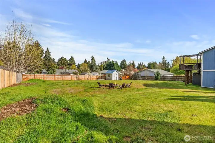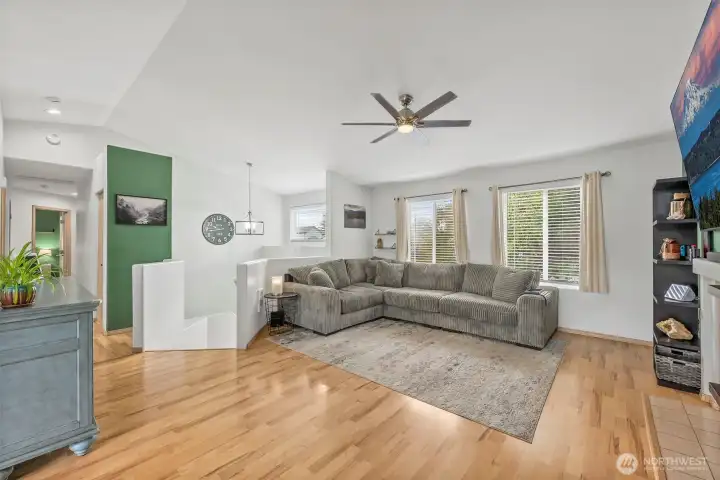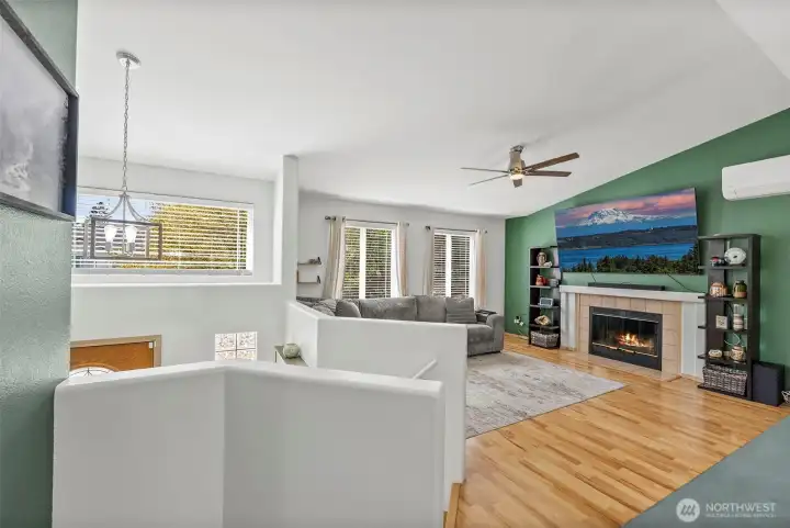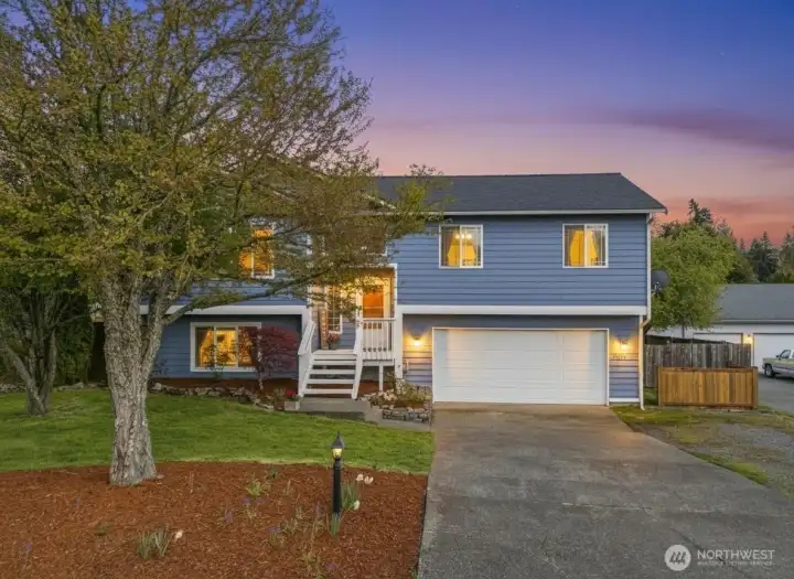 Move-in ready 3-bedroom, 2.5-bath split-entry home set on a spacious 1/2 acre lot, offering space, function, and flexibility. The main level features a bright living room with vaulted ceilings and a fireplace, creating an open and comfortable gathering space. The primary bedroom includes a full bath with double sinks, offering a practical and private retreat. Stay comfortable year-round with a mini-split A/C system. Downstairs, a bonus room provides extra living space ideal for a home office, media room, or guest area. The 2-car garage includes direct access to the backyard for added convenience. Enjoy a fully fenced backyard with double gate access, a side gate, and RV parking. The large back deck overlooks the yard and offers a great place to relax or entertain. The backyard also features a variety of fruit trees, including apple, pear, peach, cherry, and quince, adding charm and seasonal enjoyment. Located with easy access to JBLM, this home offers both comfort and convenience.