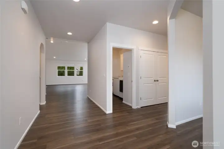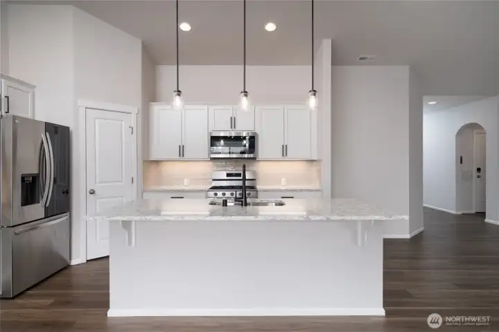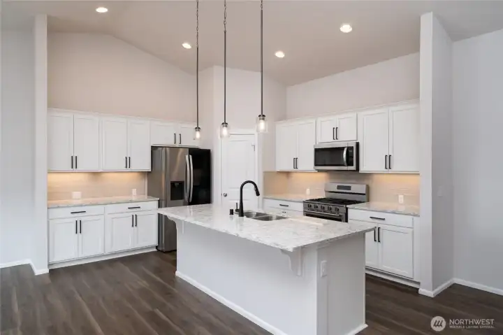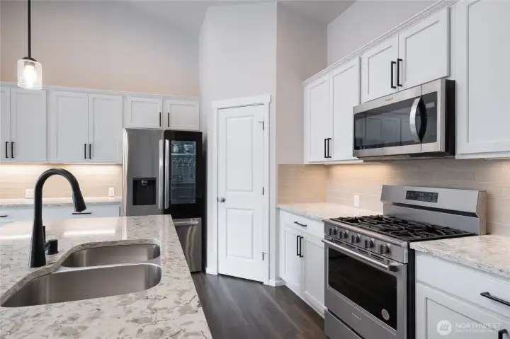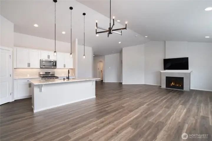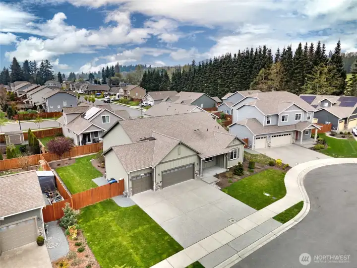 Outstanding move-in ready rambler on a quiet cul-de-sac in the desirable Cambridge Commons Neighborhood! 2,150 sq ft, well-maintained home located outside the flood zone & only 5 minutes from I-5 & Downtown Sedro Woolley. This beautiful craftsman home has great curb appeal with low-maintenance landscaping, upgraded exterior irrigation and a large 3 car garage. Escape to a large fully fenced backyard offering privacy & room to breathe that you won't find in nearby new construction. Front door opens to luxury vinyl flooring throughout, bright finishes, vaulted ceilings & a well-designed open concept naturally lit central living space, at the center of this outstanding home. Enjoy recently upgraded stainless steel kitchen appliances, beautiful white cabinetry, black hardware, a walk-in pantry, tiled backsplash w/ warm accent lighting + durable quartz countertops. Central living space seamlessly connects to the family room & features a cozy gas fireplace for cold and stormy days. Enjoy energy-efficient comfort with a 90%+ High Efficiency forced air Heating and AC dual heat pump system and new Designer Hunter Douglas shades throughout. Unwind in your spacious primary bedroom & primary bath featuring double-vanity sinks, quartz countertops, a walk-in shower & massive walk-in closet. Interior north hallway features 2 additional guest bedrooms w/ large closets that adjoin a well-designed full guest bath w/ quartz. Sizable home office & centrally located utility room w/ great storage.