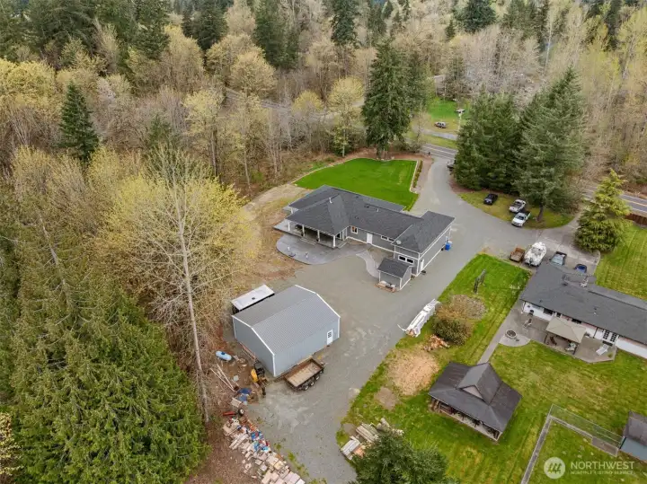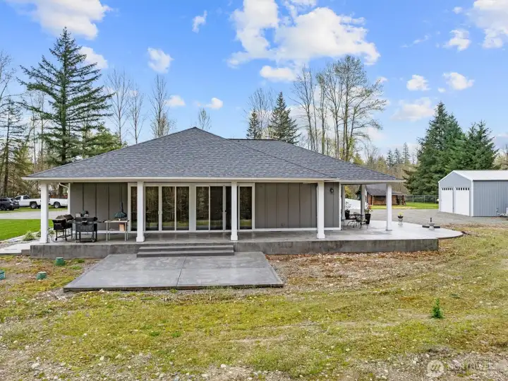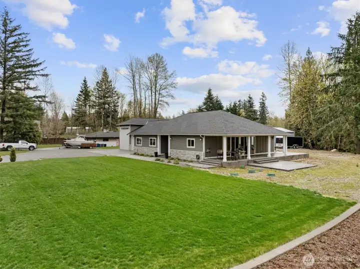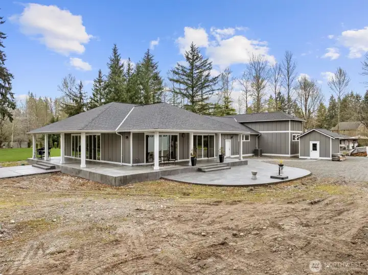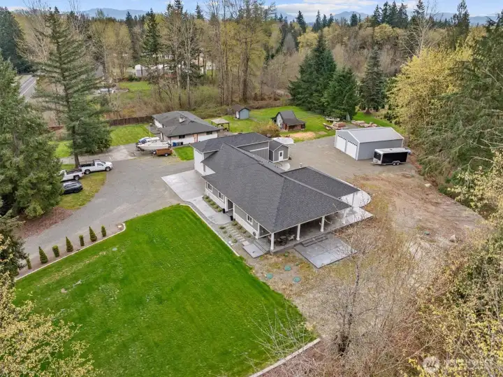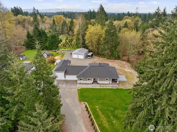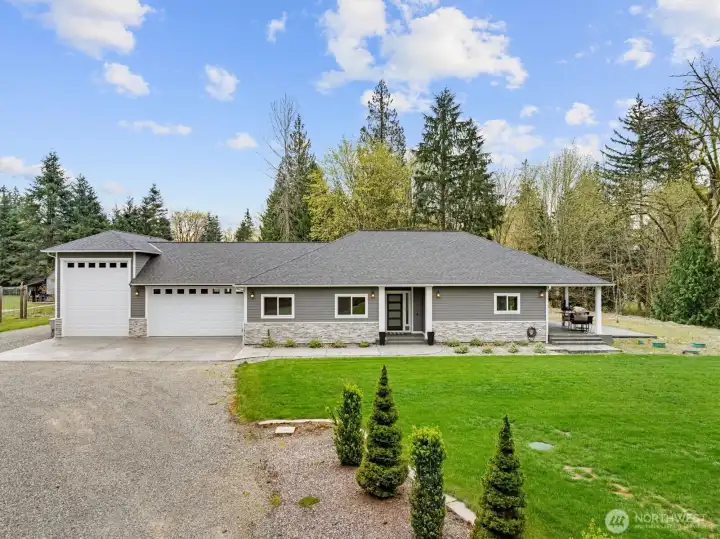 Nestled on a flat 2.2 acre private estate in the heart of Maple Valley, this custom built 2020 rambler offers an unparalleled sanctuary of refined living & effortless luxury. Spanning 2150sf with three bedrooms & 2.5 bathrooms, the home welcomes you with thoughtful craftsmanship at every turn. Step inside to discover an expansive great room where walls of sliding glass doors dissolve the boundary between indoors and out, flooding the space with natural light and a dreamy wrap around covered porch. Luxurious LVP flooring flows throughout, complemented by high-end finishes in the chef-inspired kitchen. An attached 3 car garage includes a remarkable 45-foot-deep RV bay with a 16-foot door, while a detached 35x30 shop boasts 400-amp electrical service, a 50-amp RV outlet, and its own dedicated septic system! A separate outbuilding with power and heat provides versatile space for any creative pursuit. This is more than a home—it is a private retreat where modern convenience meets uncompromised quality. Just minutes from Maple Valley’s charming town center, trails, and conveniences, yet worlds away in tranquility, it embodies the effortless grace and timeless comfort of a Ritz-Carlton residence. Here, every day feels like an elevated escape, thoughtfully designed for those who appreciate life’s finer moments. A rare opportunity to own a custom-crafted legacy property that seamlessly blends luxury, functionality, and peaceful Pacific Northwest living! Schedule your tour today!