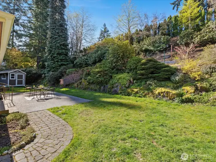 The stairs to the lower level have this convenient landing with door to the backyard.