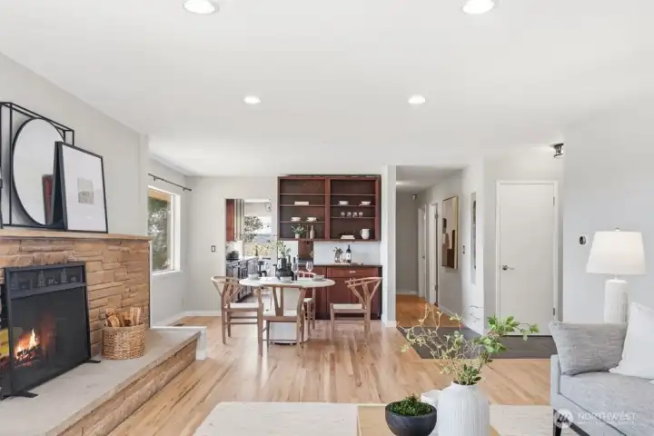 Original hardwood floors and wood burning fireplace