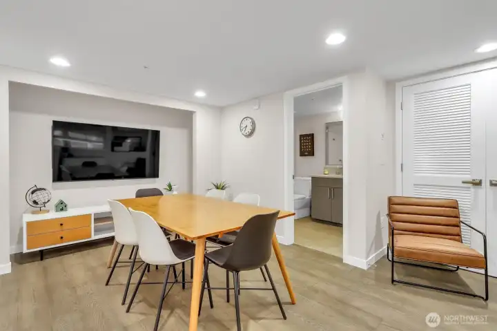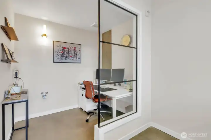 Impressive live/work loft-style condo in a highly desirable location. This bright, open space features a modern blend of concrete, glass, and steel, offering exceptional style, comfort, and flexibility. Highlights include soaring ceilings, polished concrete and hardwood floors, a beautifully appointed kitchen, custom blinds, in-unit laundry, A/C, and garage parking. Perfect for residential living, office, retail use, or a combination of all. Conveniently located near the Roosevelt light rail, University Village, parks, shops, restaurants, and the University of Washington.