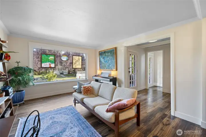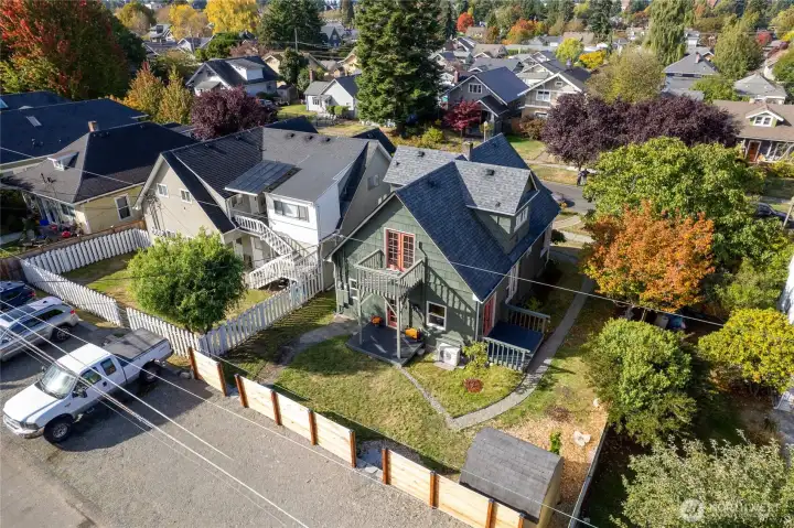 Welcome home to your North Tacoma cutie in the highly sought-after UPS neighborhood! Ideally located near Proctor, the 6th Ave District, and Old Town shops, this charming turn-of-the-century home blends classic character with thoughtful updates. High ceilings, crown molding, built-ins, and beautiful floors create a warm, inviting feel, while the updated kitchen features concrete countertops, tile backsplash, and a functional eat-in layout. Enjoy the newly added main-level porch—perfect for morning coffee—and a spacious living area filled with natural light. The main floor also offers a generous bedroom and updated full bath, while the upper level provides incredible flexibility with the potential for it's own entrance, to include laundry, full bath, bedroom, living space with balcony, and kitchenette—ideal for multi-generational living or rental income. Additional highlights include ductless mini-split heating & cooling, a partially fenced yard with room to entertain or garden, tons of off-street/driveway parking, plus alley access. This home offers the perfect balance of charm, versatility, and location—don’t miss your opportunity to own a piece of North Tacoma!