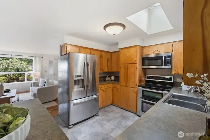 Light and bright with skylights and hardwood floors