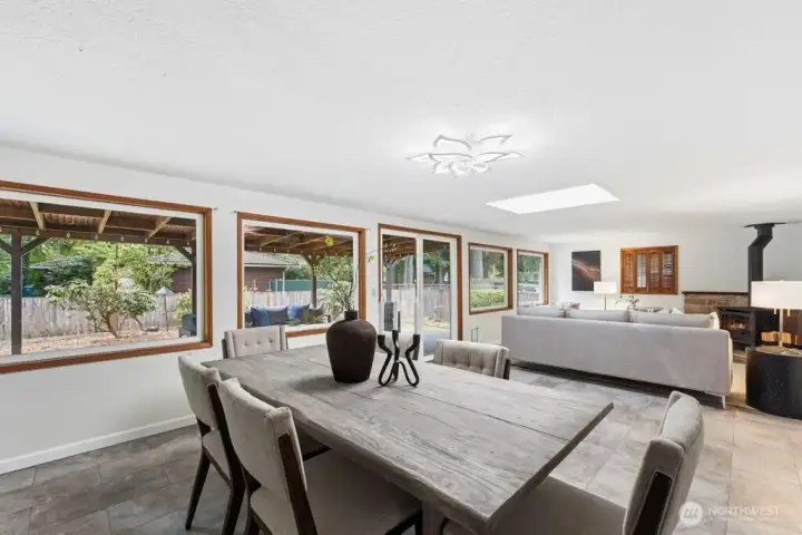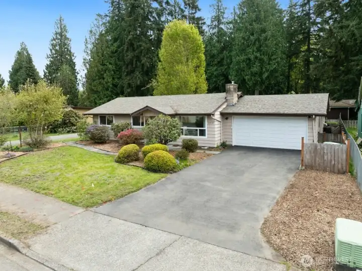 Comfortable one-level living with thoughtful updates feels like home! Light and bright with skylights and hardwood floors. Open and inviting living and dining spaces. Large kitchen with stainless appliances and plenty of counter space and cupboards for prep and storage. This home boasts both a wood burning fireplace as well as gas fireplace for cool nights and A/C for warm days. The huge flexible family room provides another gathering, office or play space. The covered outdoor living area and fenced yard are great for BBQing, entertaining, gardening, pets and playtime in any weather. Generous bedrooms and updated bathrooms including a king-sized primary with en-suite bath. Freshly painted and move-in ready. This beautiful home is situated on a quiet street and features a roomy 2 car garage, tons of storage plus additional 2-car tandem carport, RV/Boat parking or additional covered outdoor area. Super well located close delicious restaurants, multiple grocery stores, great services, fun shops and multiple transportation options with easy access to Hwy 18, 167, I-5 and so much more. Livability, Location, style and functionality. This home has it all!