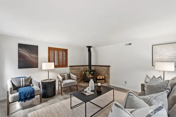 Huge flexible family room with wood burning fireplace