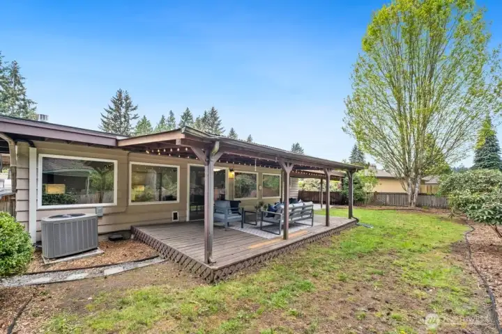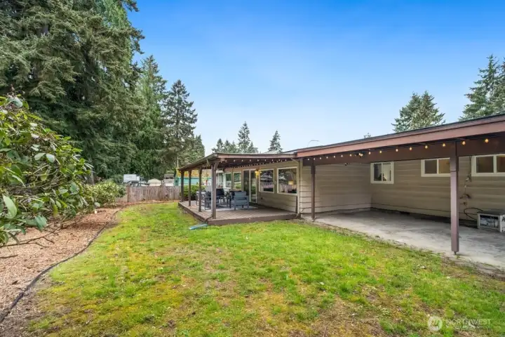 Covered outdoor living area and fenced yard